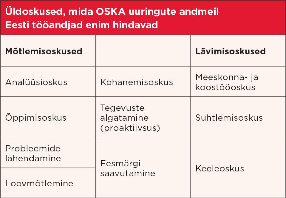 Teadlikkus sellest, millised on erialaoskuste kõrval sinu kõige tugevamad üldoskused, on tööturul konkureerides oluline. Nüüdsel ajal ei otsi tööandja niivõrd inimest kindlale ametipostile, vaid teeb valiku, lähtudes sellest, milliseid oskusi ta oma ettevõttesse vajab, et klientidele antud lubadusi täita või uusi tooteid ja teenuseid arendada.