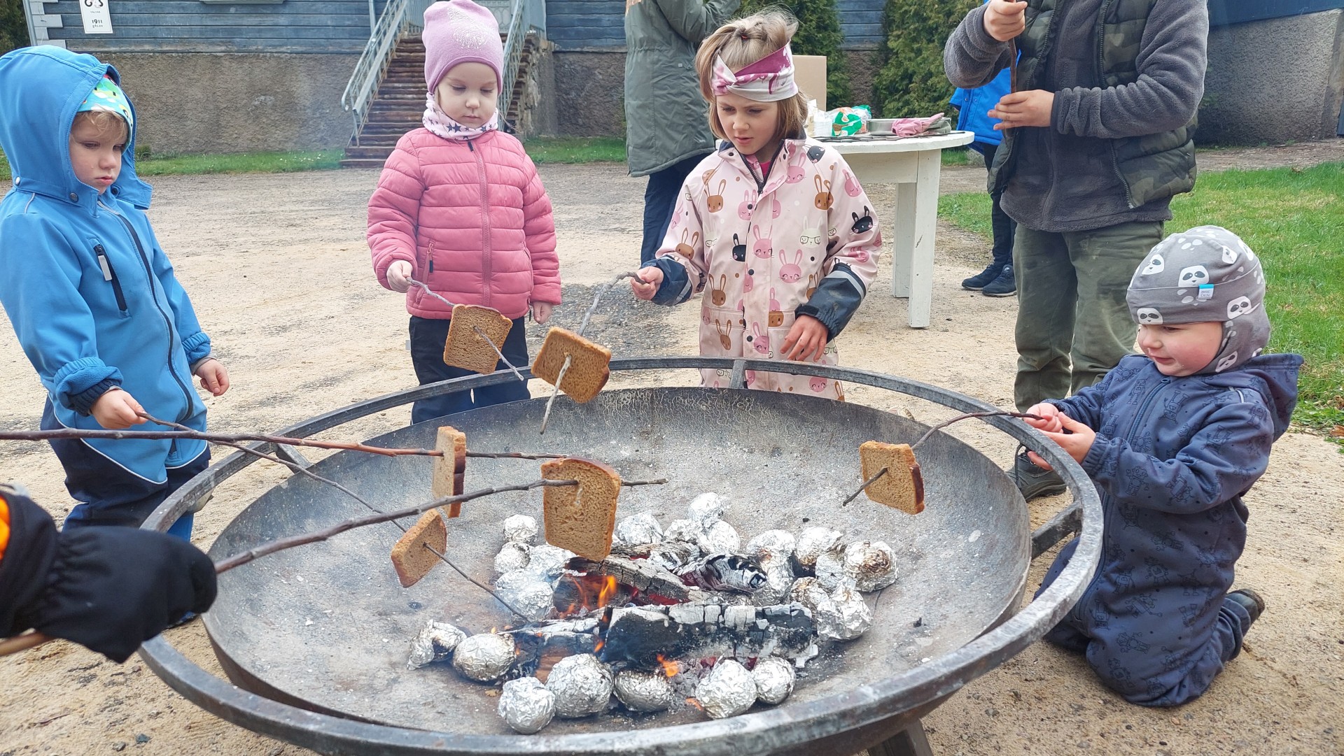 Kord sattus meie õuepäevale vallavanem, kes tavapärase tervitus- ja kohvilaua asemel sai samuti endale ise lõkkel süüa valmistada. Ta tundis suurt muret väiksemate laste turvalisuse pärast ning läks neid isegi hoiatama, et lõke on ohtlik ja vardad kuumad. Rahustasime teda, et meie lapsed on sellega harjunud ja ka kõige pisemad saavad toidu lõkkel küpsetamisega hakkama. Maast madalast alustades ei juhtu lõkke ääres midagi, kui eelnevalt on lastega ohutuse teemadel vesteldud.