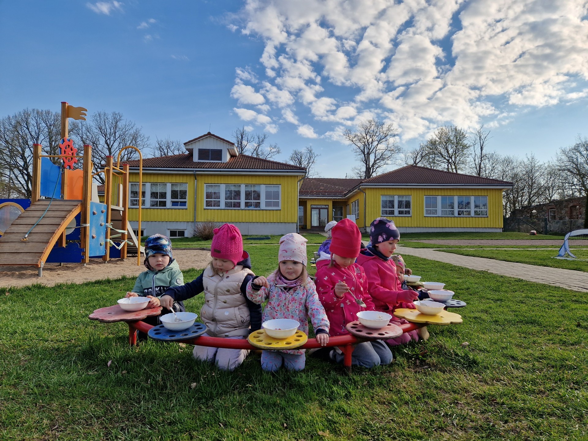 Meil on üks kord kuus „Kõik õue!“ päev, mis tähendab, et kõik tegevused peale magamise toimuvad õues, kus on ka kõik töötajad, sealhulgas juhid, kokk ja logopeed. Sellel päeval toimub kas matk, orienteerumine või erinevad tegevused õuealal. Kui ilm võimaldab, sööme ka hommikust õues. Lapsed tahavad väga õues süüa.