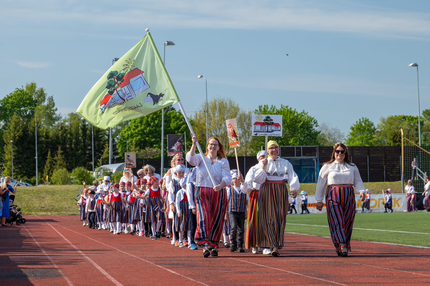 Tore oli Laagri Kooli staadionil pealtvaatajate hulgas näha koolilapsi, kes lasteaia vilistlastena rõõmsa nostalgiaga staadioni kõrval tuttavaid tantse kaasa tantsisid.