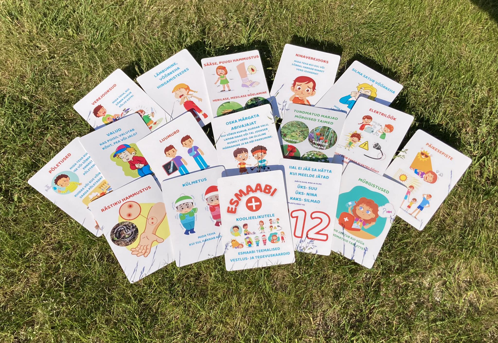 Projekti lõpptulemusena valmisidki esmaabi teemal vestlus- ja tegevuskaardid 5–7-aastastele lastele, mis piltide ja ülesannete kaudu tutvustavad lastele esmaabi põhitõdesid. Kokku on komplektis 16 kaarti, mille tagumisel küljel on põhjalik juhend õpetajale ja mõned mängude ideed. Lisaks on igal kaardil kirjas vahendid, mida peaks teemat käsitledes kasutama. Kaartidel käsitletud 16 teemat on: abi kutsumine numbril 112; oskus märgata abivajajat; põletused; ninaverejooks; lämbumine / võõrkeha hingamisteedes; silma sattunud võõrkeha; verejooksud; sääse-/puugihammustus, mesilase/herilase nõelamine; rästikuhammustus; valud; mürgistused; tundmatud marjad, mürgised taimed; päikesepiste; elektrilöök; luumurd ja külmetus. Lisaks kaartidele loodi toetav lisamaterjal õpetajale.