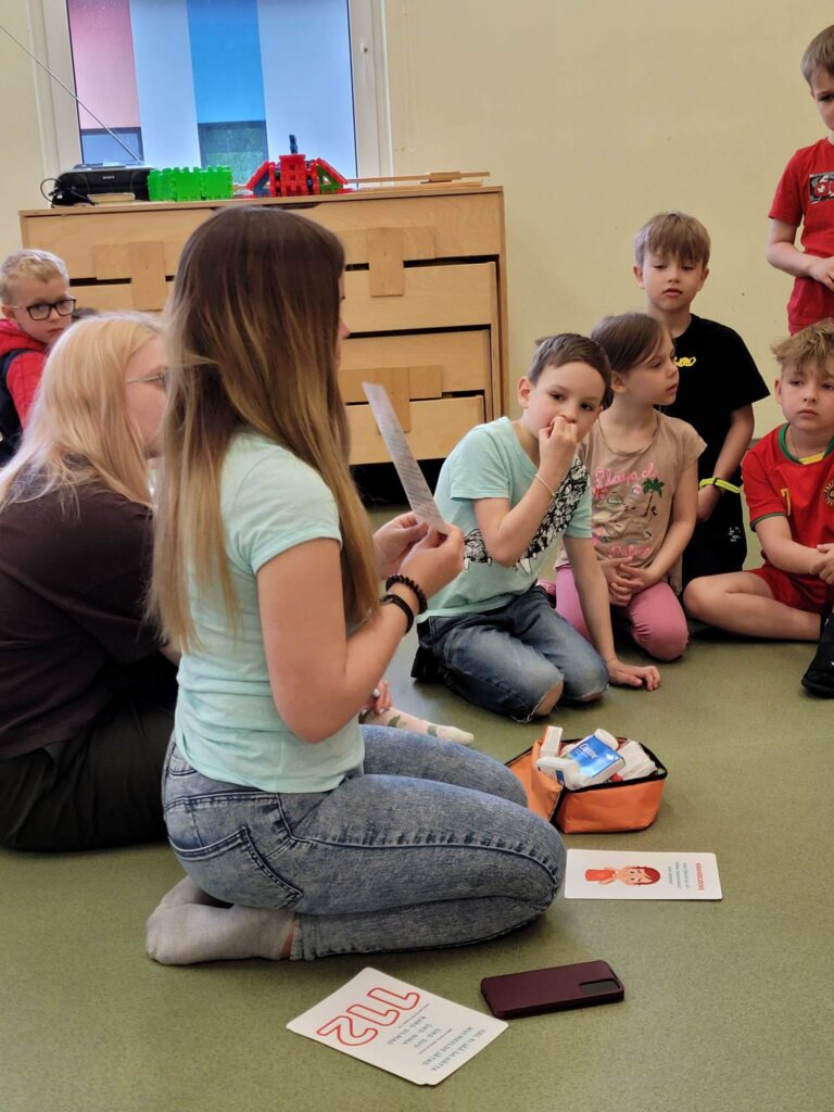 sääse- ja puugihammustuste kaart, verejooksude, mürgistuste ja põletuste kaart. Kaartide tutvustamine seisnes lastelt esmaabiteemaliste küsimuste küsimises, millele järgnes pikem seletus, põhjendus ja õpetus. Lapsed olid väga jutukad ja jagasid lugusid vigastustest, millega nad on varasemalt kokku puutunud. Seejärel said lapsed ise proovida esmaabi osutada, näiteks desinfitseerida haava ja panna plaastrit, paigaldada külmakotti, kontrollida hingamist ja fikseerida ninaverejooksu järgset peaasendit. Kogu tegevus kestis umbes 40 minutit, pärast mida jagasid rühmaõpetajad üliõpilastega oma soovitusi. Õpetajad olid mängust huvitatud, kuna nende sõnul ei kajastata esmaabi teemat lasteaedades piisavalt.