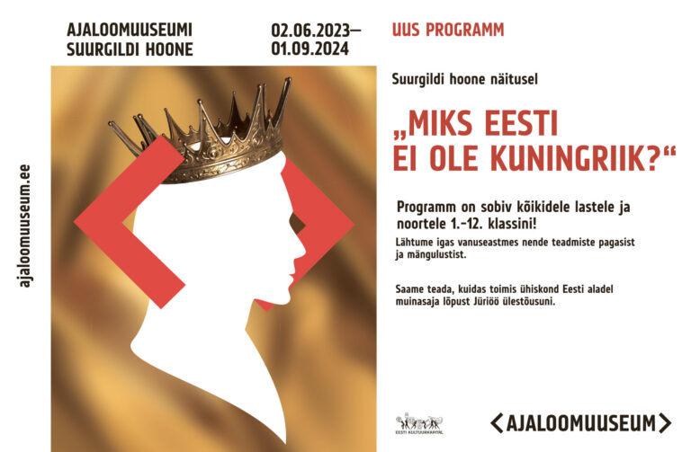 Alates septembrist pakumegi haridusprogrammi näitusele „Miks Eesti ei ole kuningriik?“. See on mõeldud kõikidele kooliastmetele, kusjuures lähtume konkreetse vanuseastme teadmiste pagasist ja mängulustist. Programmi käigus uuritakse arheoloogilisi leide, rahasid, ajalooallikaid ning arutletakse, kuidas toimis ühiskond Eesti aladel muinasaja lõpust kuni Jüriöö ülestõusuni. Põnevust ja arutelusid jätkub kõigile tervelt 1–1,5 tunni vältel! Lisaks saavad kõik kuninglikus keebis ja krooni kandes end troonil jäädvustada!