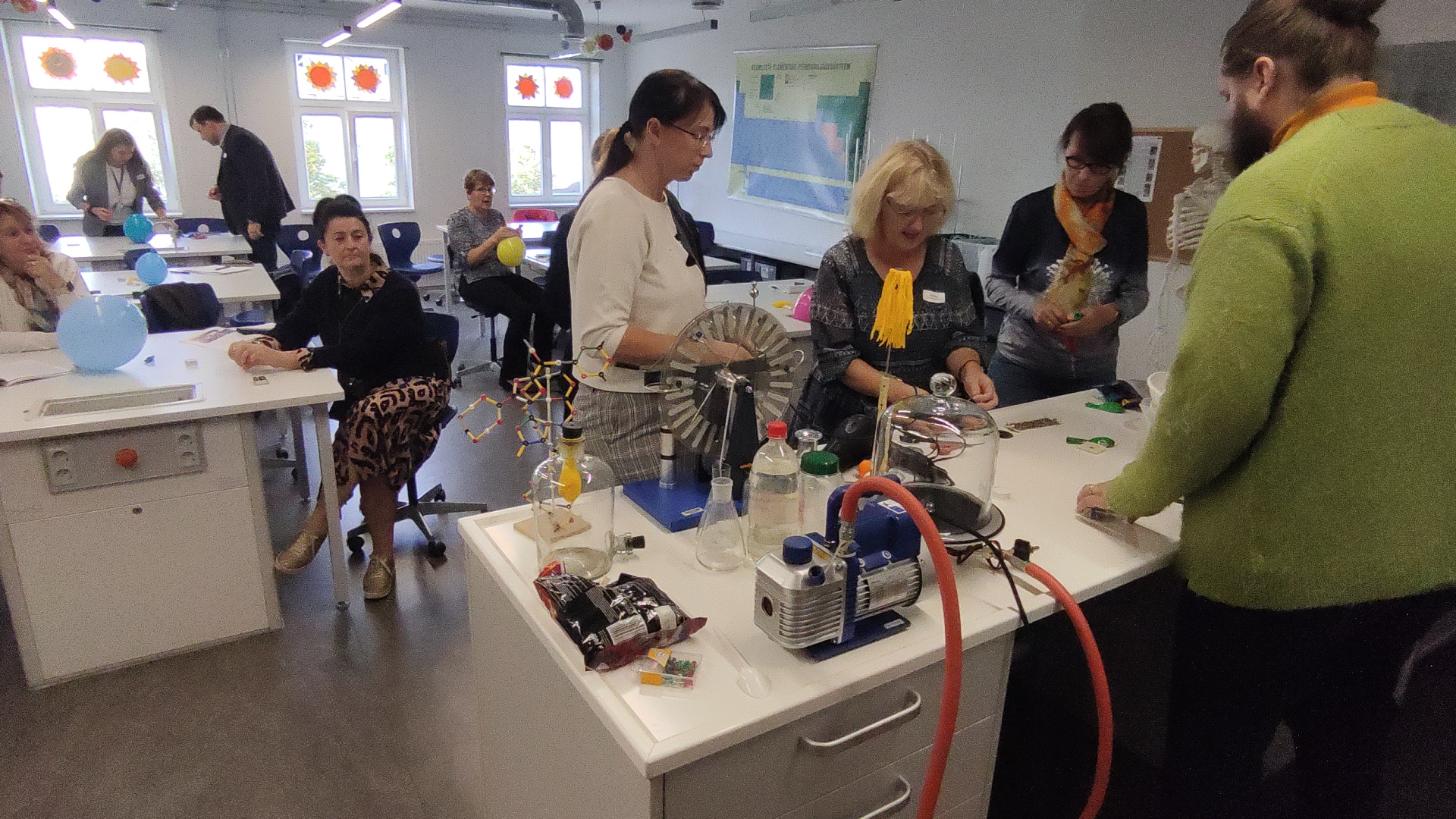 Konverentsi teise päeva üritustest oli väga meeleolukas reaalkooli õpetaja Reivo Maasiku töötuba „Esimese kooliastme tundide rikastamine katsetega füüsikast ja keemiast“. Seal demonstreeriti, kuidas teha lihtsa õhupalliga oma paar-kolmkümmend füüsikakatset. Me panime õhupalli vett ja avastasime, et küünlaleek ei tee palli sisse auku – vesi on hea soojusjuht. Vajutasime õhupalli vastu nõelapatja ja nägime, et pauku ei käi – saja nõela toetuspind on lai. Tegime ka katset torgata sukavarras läbi õhupalli, mis pooltel meist õnnestus. Reivo Maasik soovitas teha selliseid lihtsaid katseid mis tahes aine tunnis, sest väikesed kõrvalepõiked tunni peateemast tulevad õppimisele kasuks.