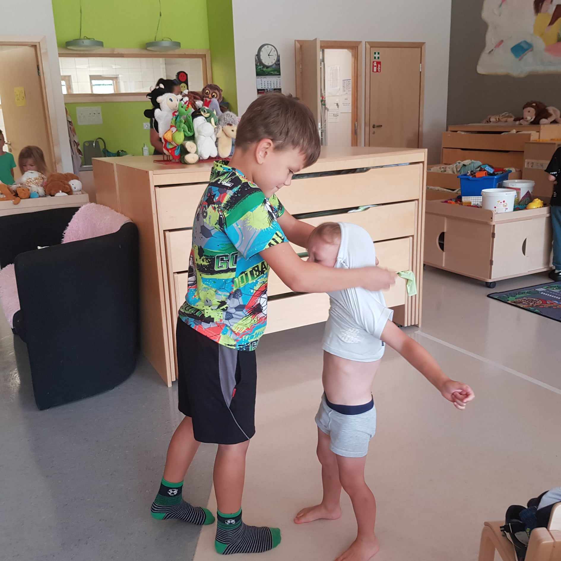 Õpetaja Katri Vahesalu: Praegu on rühmas veel kohanemise ja üksteisega tutvumise periood. Aga algusest peale oleme lastele igapäevatoimingute juures märku andnud, kuidas rühmas käituda tuleb. Neile, kes tulid meile sõimerühmast, on maja tuttav ja kokkulepped enam-vähem teada. Rohkem tähelepanu vajavad kodust tulnud või eesti keelest erineva kodukeelega lapsed.