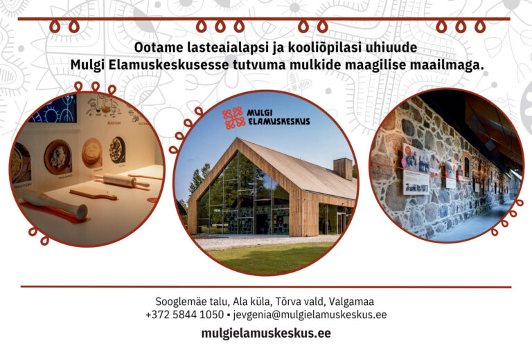 Põnevad Mulgi lood ja mütoloogia ning hariv meelelahutus – no kus sis viil ku mitte Mulgi Elamuskeskusen! Sii om iki üits õige Mulgi asi. Tule kae perr, kuda mulgi elave!