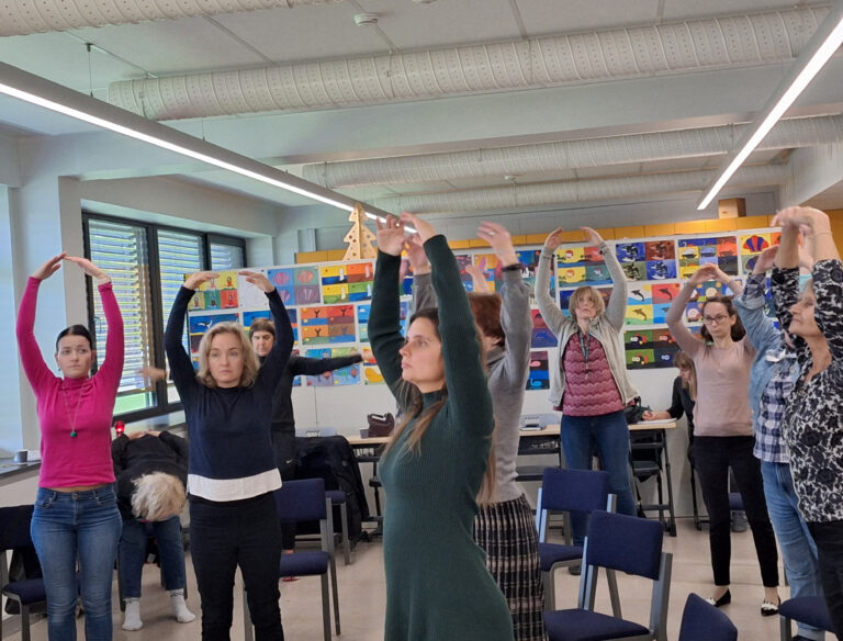 Mitmed õpetajad jagasid õpitubades kogemusi, kuidas keha turgutada. Annelinna gümnaasiumi kunstiõpetaja Erna Tamm õpetas lõõgastava muusika saatel kontorijooga harjutusi, mille sooritamiseks pole vaja matil pikali olla, neid saab teha ka toolil istudes või tooli kõrval seistes.