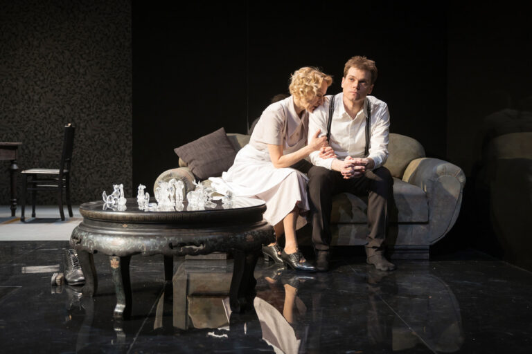 Liina Olmaru ja Mirko Rajas lavastuses „Klaasist loomaaed“.