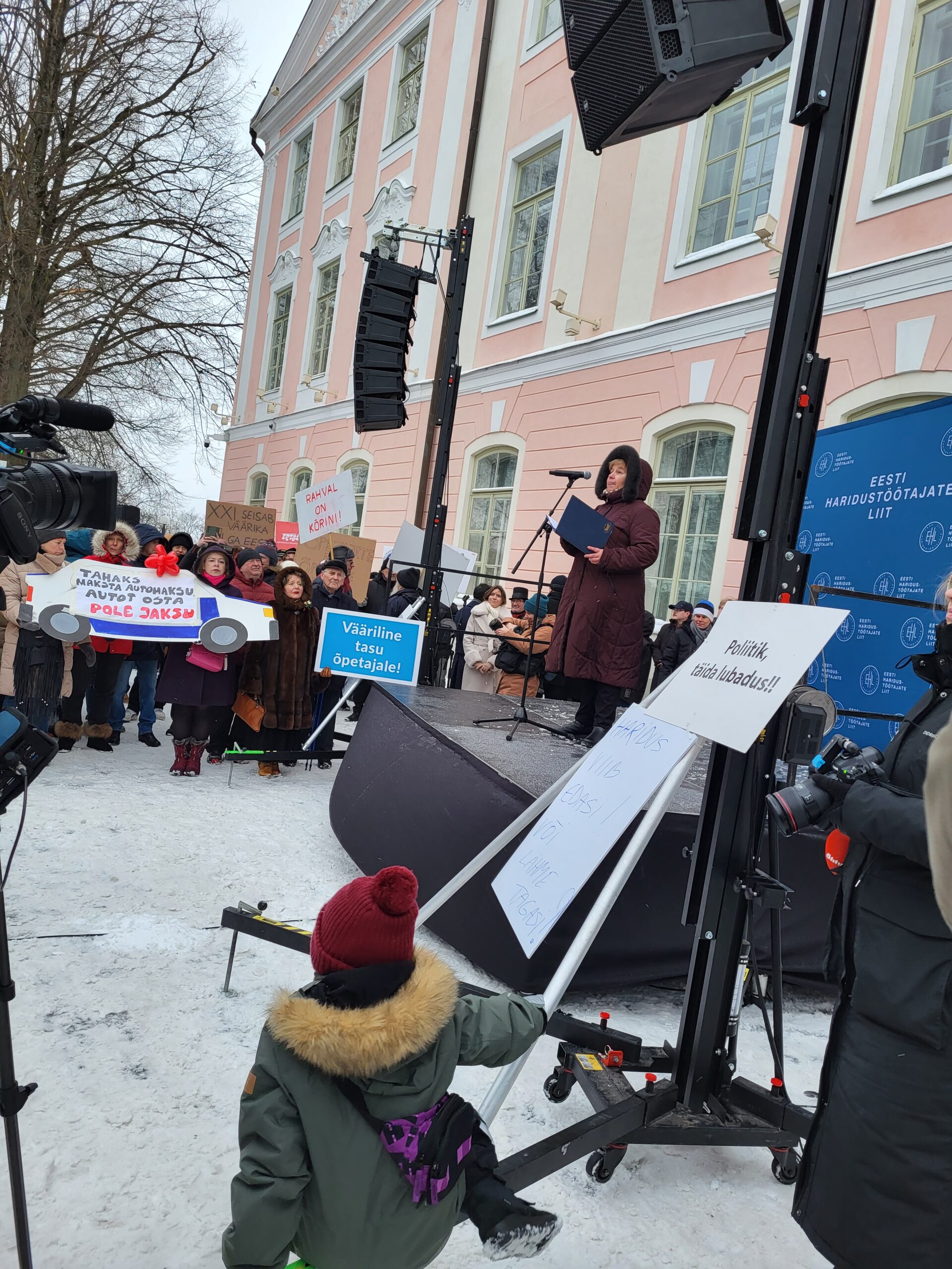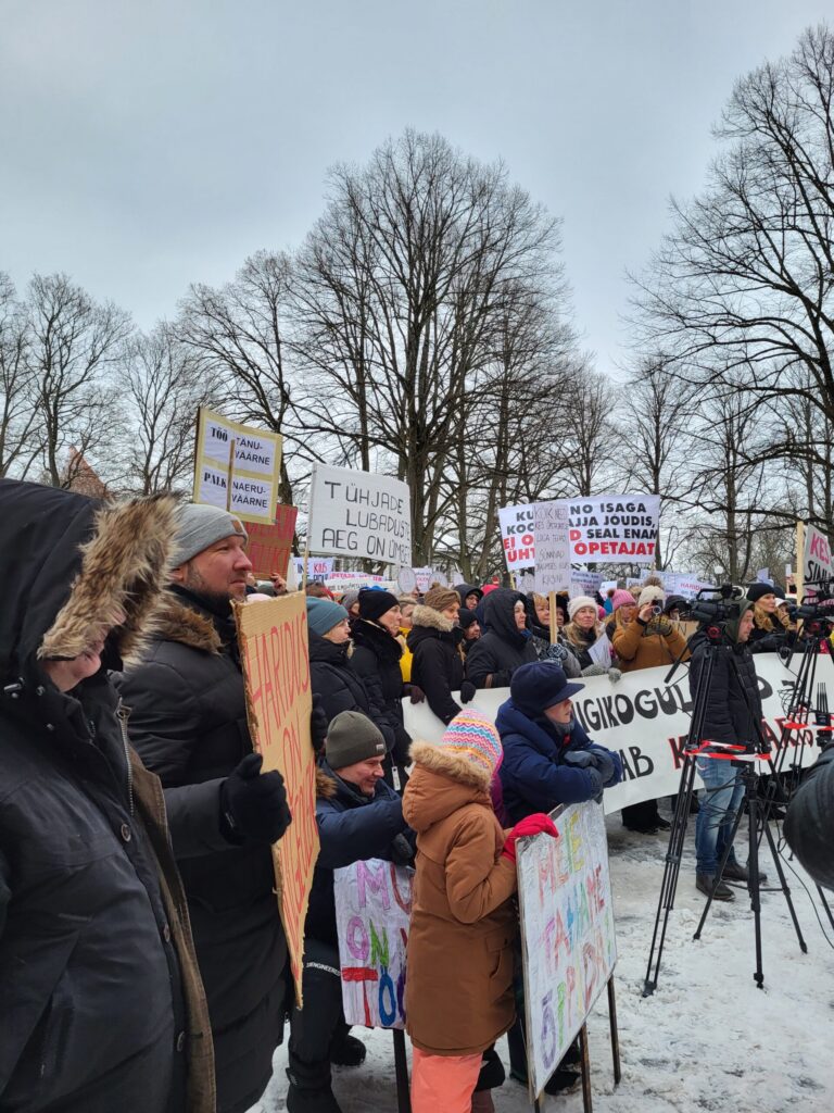 Esmaspäeval, 22. jaanuaril algas haridustöötajate tähtajatu streik ning kell 10 hommikul toimus meeleavaldus Riigikogu-esisel väljakul. Ürituse korraldajad olid Eesti Haridustöötajate Liit koostöös Tallinna ja Harjumaa haridustöötajate ametiühinguga.