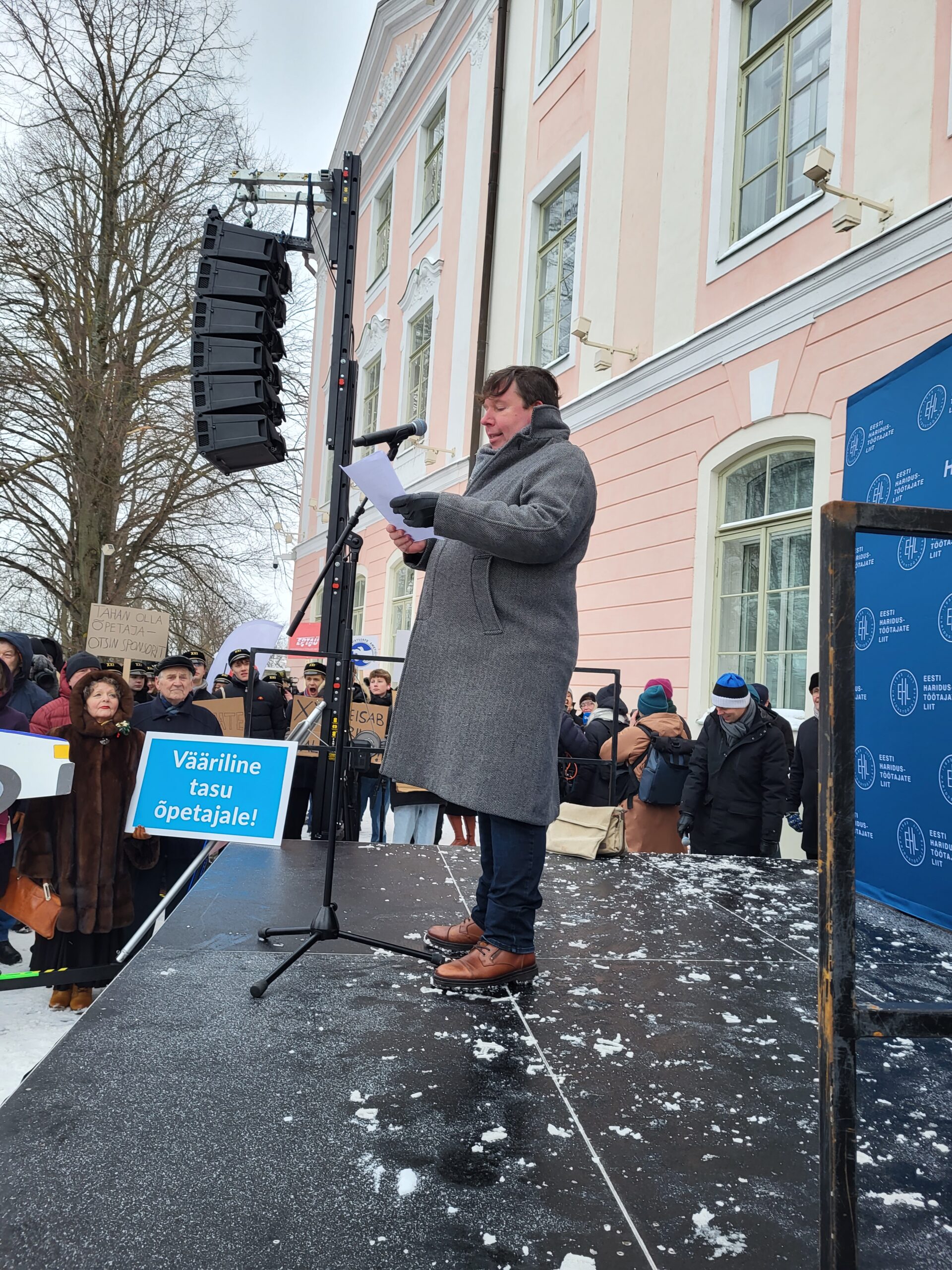 Gustav Adolfi Gümnaasiumi õpetaja Indrek Riigor tõi oma kõnes välja mõned streigi põhjused.
