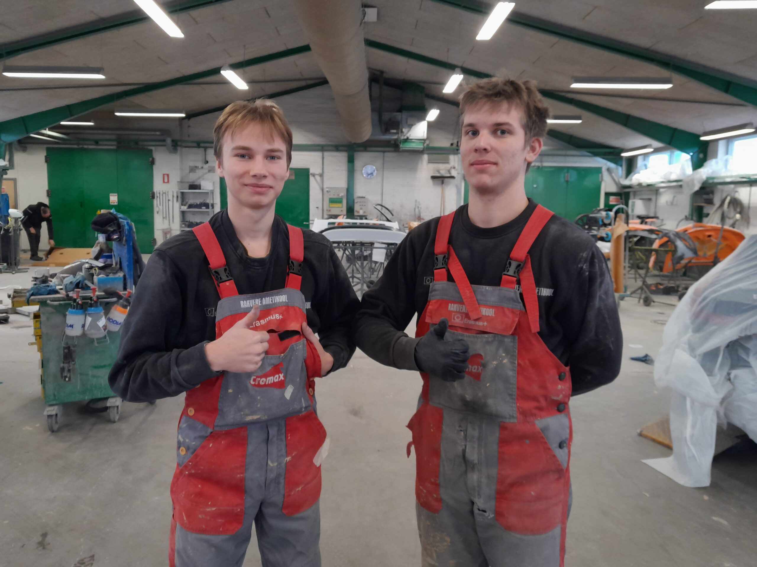 Rakvere Ametikooli kolmanda kursuse automaalri eriala õpilased Tenno ja Lauri olid Erasmus PRO praktikal Taanis ettevõttes Exolak AS 2023. aasta septembrist detsembrini. Fotod: erakogu
