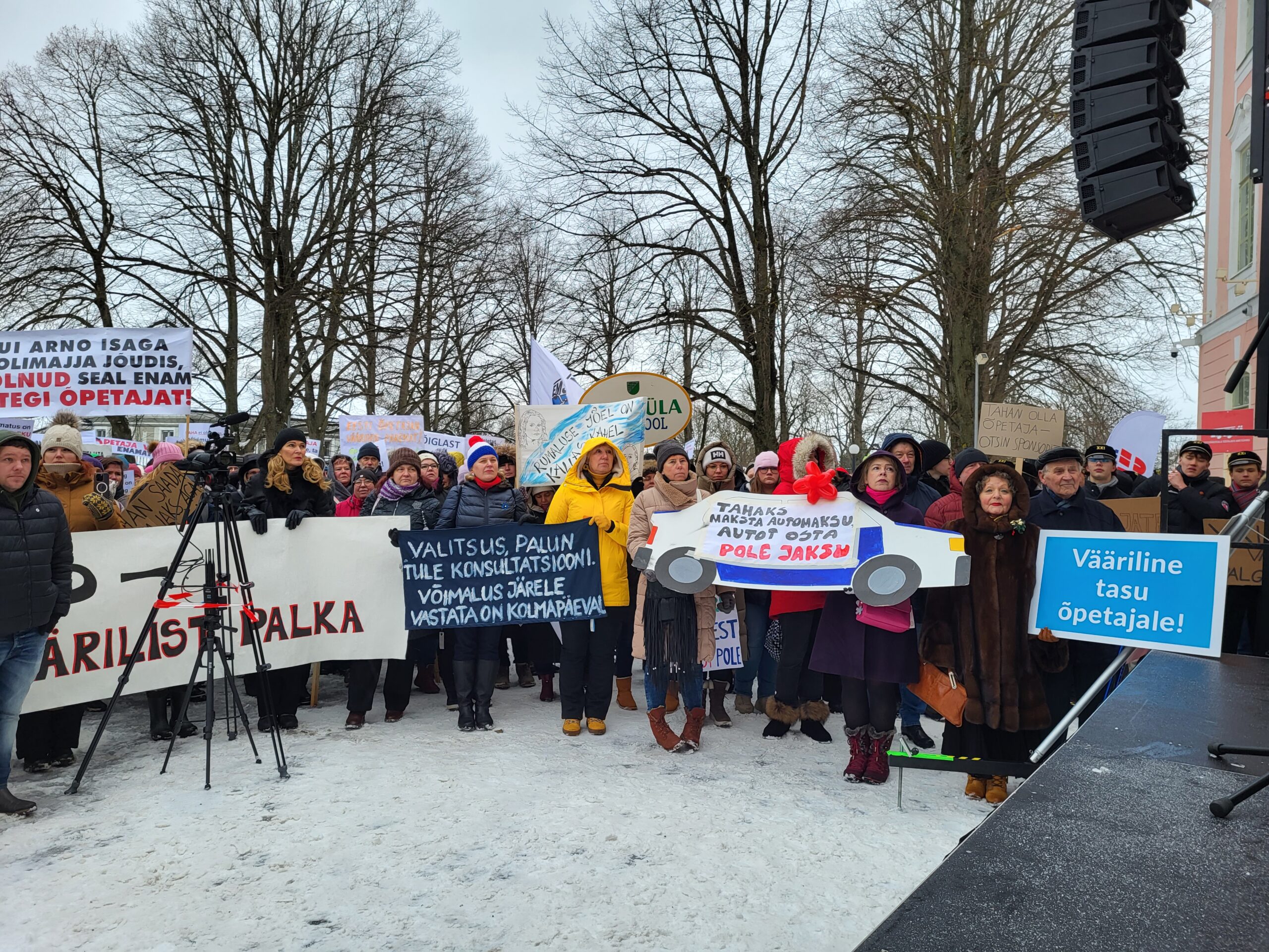 Haridustöötajate meeleavaldus Riigikogu ees Toompeal 22. jaanuaril. Fotod: Merilin Mändveer