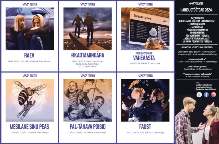 Suured tunded ja rasked valikud. VAT-i kevadest ei leia mitte ainult noorte väljakutsetest pajatavaid uuslavastusi, vaid ka hulganisti põnevaid töötube, programme ja projekte.