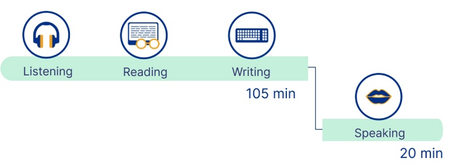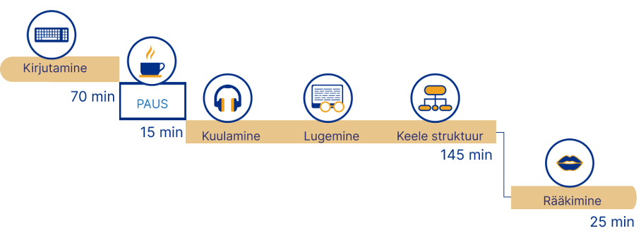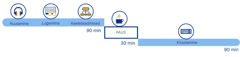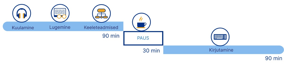 Eksami kirjalik osa kestab koos vaheajaga 230 minutit ja see sooritatakse arvutis. Suulise osa pikkus on 25 minutit. Suuline osa salvestatakse EIS-i, kuid läbi viib seda – nagu tavaeksamilgi – intervjueerija, kelleks on kooli õpetaja.