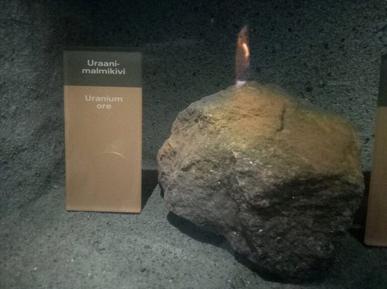 Viimase tunni veetsime külastuskeskuse näitusel. Seal sai vaadata, pildistada ja katsuda kõiki asju, mille kohta enne öeldi, et seda ei saa ja toda ei tohi. Näiteks olid seal välja pandud uraani töötlemise vaheproduktid. Kõik järjest, maagist kuni kütusepelletini. Uraanheksafluoriid nägi küll kahtlaselt suhkru moodi välja ja küllap oligi suhkur, aga lugu ise oli hästi esitatud ja õpetajale õpetlik. Olid ka mõned päriselt radioaktiivsed asjakesed, mida õnneks kätte võtta ei saanud, aga võis mõõta Geigeri loenduriga, et veenduda – α-kiirgus täitsa olemas. Kõige rohkem pildistati küll iseendaga, küll teistega, küll niisama maailmakuulsat vasest tünni, milles hakatakse kasutatud kütust matma 100 000 aastaks, nii et ka järgmine jääaeg talle midagi kurja ei tee.