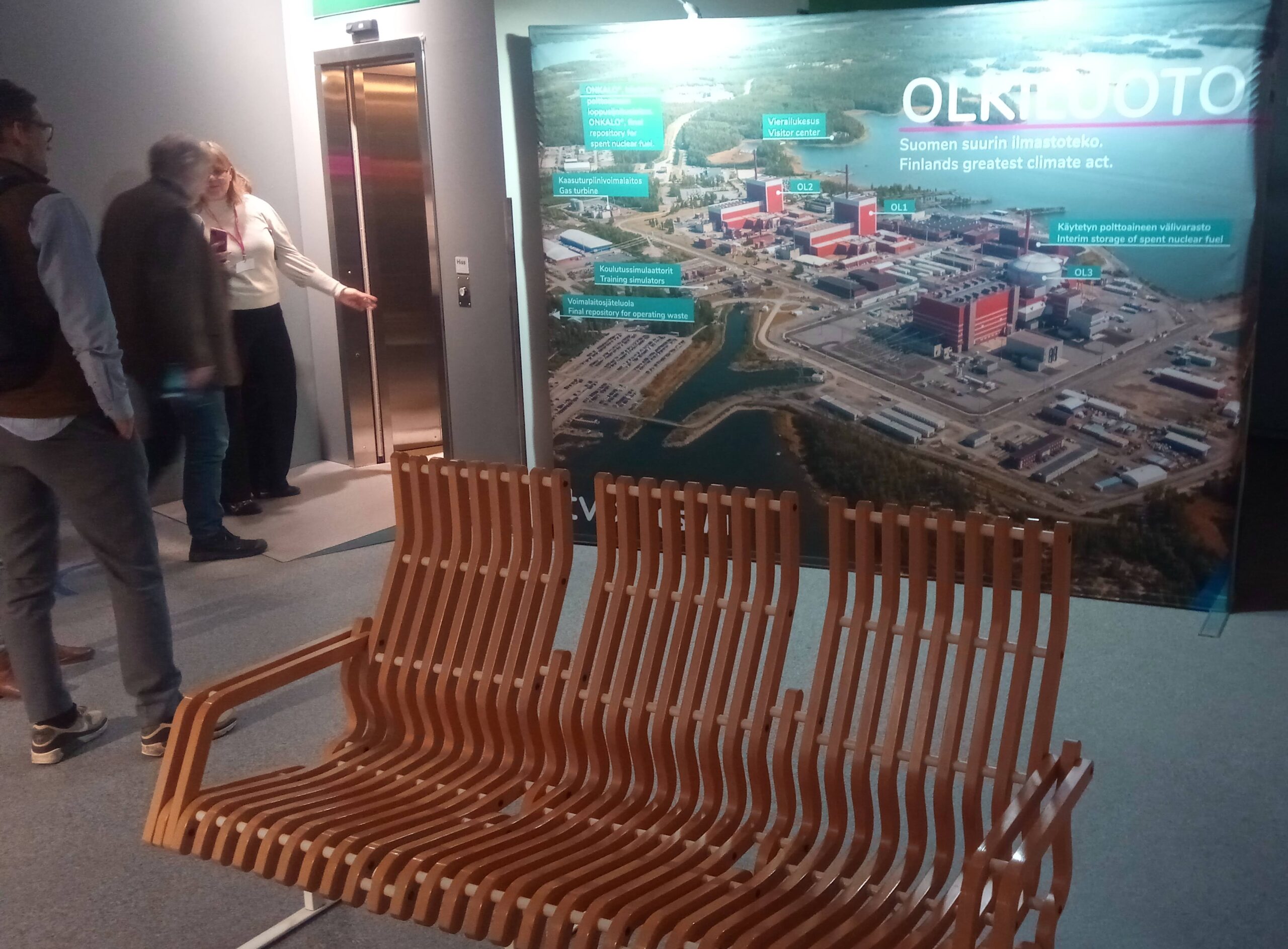 Tuumajaama külastuskeskuse turvakontrollis saavad füüsikaõpetajad nimelised külalisekaardid paelaga kaela. Olkiluoto kolme reaktorit saame esialgu näha ja pildistada üle lahe. Vaade on äge, aga muidugi tahaks lähemalt näha. Kuulame ära, mida on külastusjuhil öelda. Öelda on tal päris palju ja õpetajatel üksjagu küsida. Lektor on päris hea vastaja. Ühel juhul täpsustab küsimust ja ütleb, et see on saladus. Samas annab hea vihje, kuidas vastuse ikkagi kätte saab, kuigi tema seda otsesõnu öelda ei tohi. Mõnikord kiidab küsimust ja küsijat (Good question), teinekord jääb natuke hätta, aga pakub ikka oma arvamust (I’m guessing).
