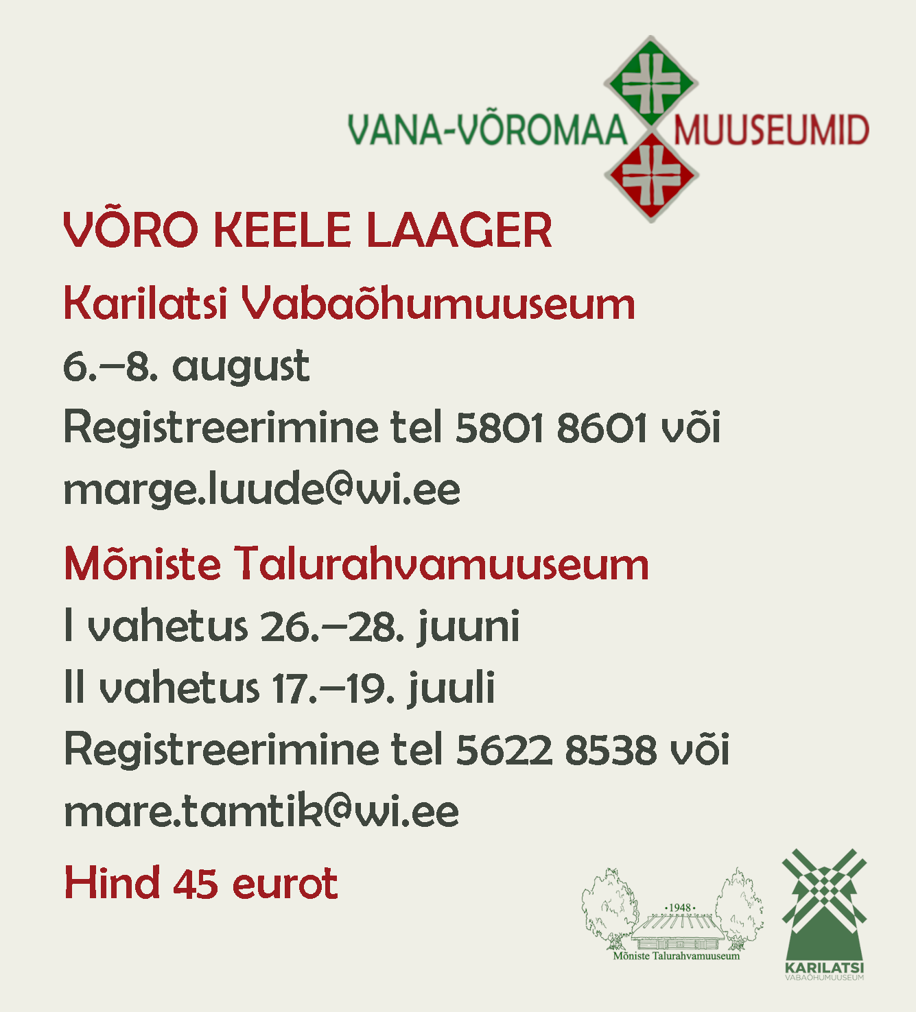 Ees ootaval suvel meelitavad Lõuna-Eesti kaunis maastik ja värske õhk lapsi juba traditsiooniks saanud võru keele laagrisse. Suvekuudesse on planeeritud kolm laagrivahetust, millest kaks toimuvad Mõnistes ja üks Karilatsis. Kolme päeva jooksul saavad laagrilised kümmelda võru keeles ja kultuuris. Neid ootavad ees kohtumised põnevate külalistega, lõkkeõhtud, maastikumängud, meisterdamised ja vahvad väljasõidud. Meelelahutuslike ettevõtmiste vahele on pikitud võru keele tunnid, mida muuseumitöötajate kõrval peavad ka keeleinimesed Võro Instituudist. Lisaks saavad lapsed ennast proovile panna mitmes talutöös, nagu kaelkookudega vee tassimisel ja käsikiviga jahu jahvatamisel.