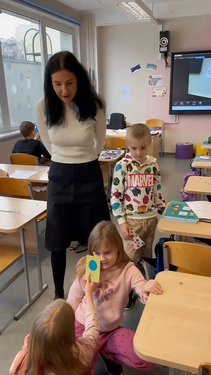 Vene õpetaja Olga Hudjakova õpetab vene kodukeelega lapsi eesti keeles. Tunni teema on tunded ja värvid.