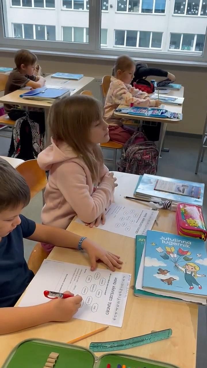 Õpilased selles klassis on venelased, kuid sekka on juhtunud ka üks eestlane. Õpetaja sõnul räägivad lapsed vahetunnis paratamatult omavahel vene keelt, kuid õpetaja suhtleb nendega ainult eesti keeles. Lapsed saavad temast juba päris hästi aru, kuid vabamas jutuajamises kipuvad vastama ka vene keeles. No arusaadav ka.