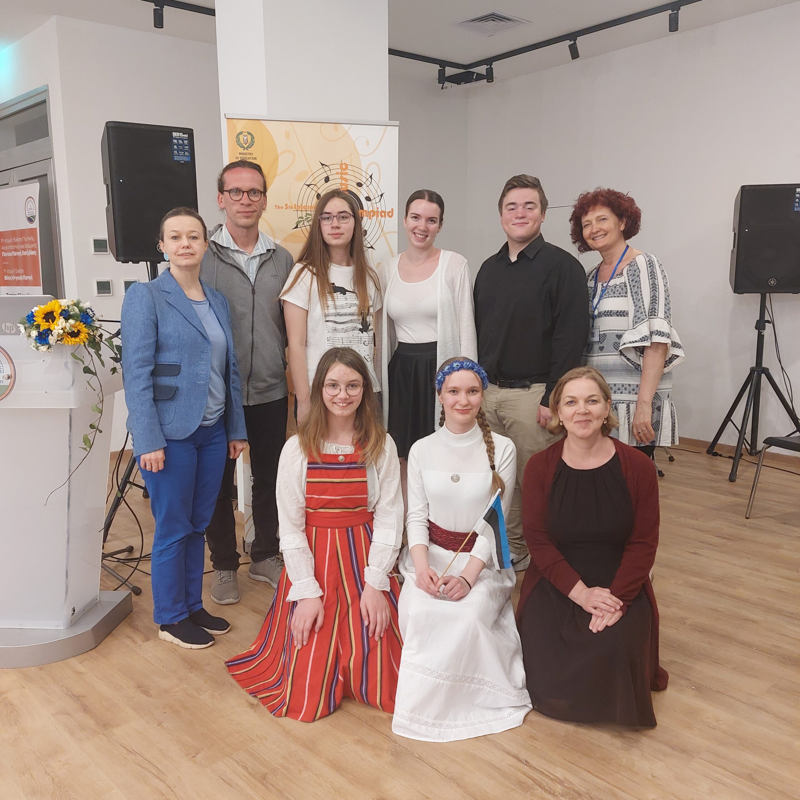 Eesti delegatsioon rahvusvahelisel muusikaolümpiaadil. Esimeses reas Karoliina Mürk, Miia Maria Treier, Kai Treier. Teises reas Kristi Kiilu, Thilo Fürstenberg, Arabella Mürk, Karmen Tarre, Hanno Kull, Laine Lehto. Foto: Kai Treier