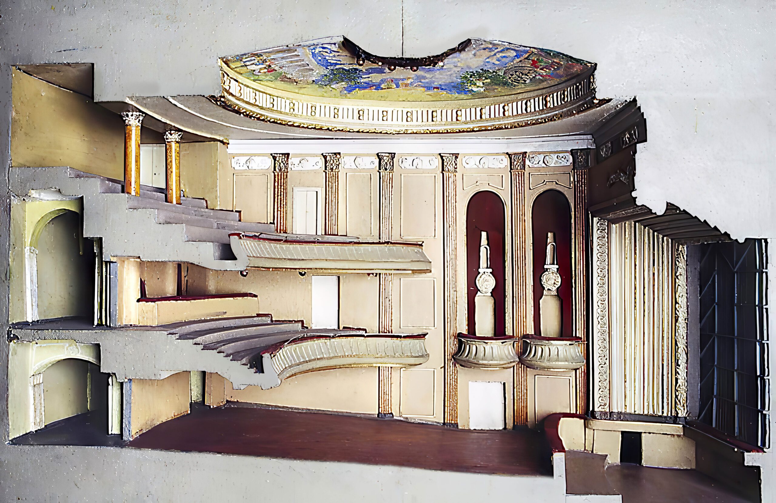 Arhitektuuriteadlane Karin Hallas-Murula on koostanud näituse teatrimajadest arhitektuuriajaloo kontekstis. Tema sõnul jääb arhitektuur oma füüsilisuses alati oma aega, teater seevastu otsib jätkuvalt sidet pidevalt muutuva kaasajaga. Teatrimajad ei saagi kunagi valmis: traagiliste põlemiste-purustuste järel on sündinud uued saalid ja teatrid. Näitekunsti ja teatritehnika areng on ajendanud ümber ehitama ja täiustama. „Vaadates praegu 1910. aastatel ehitatud teatris 18. sajandi etendust, oleme me korraga nii 2024. kui ka 1910. aastas ja 18. sajandis,“ meenutab Hallas-Murula.