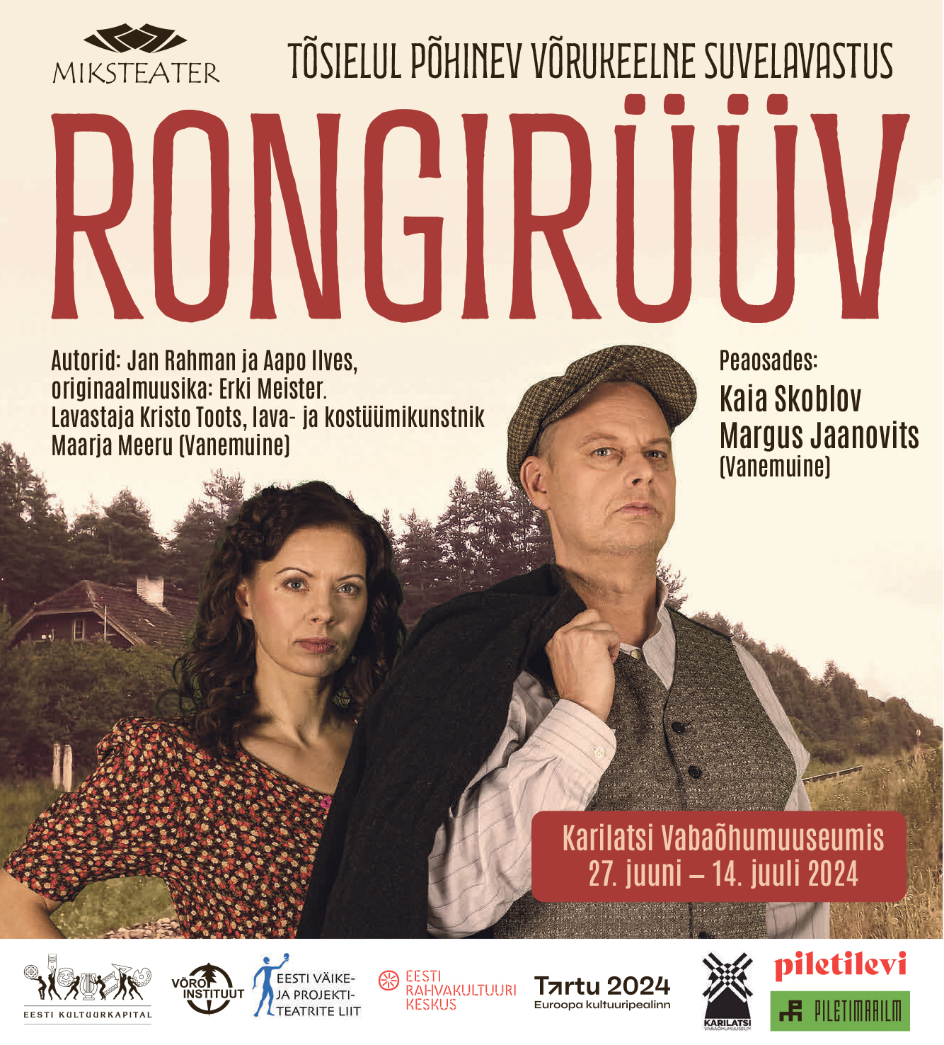 Miksteater toob 2024. aasta suvel Karilatsi vabaõhumuuseumis lavale tõsielul põhineva võrukeelse uuslavastuse „Rongirüüv“.