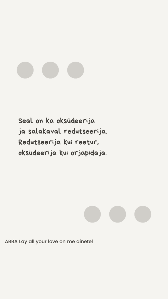 Meie lugu algas keemia- ja kirjandusõpetaja põgusast kohtumisest, millest jäi õhku idee, et 8. klassi õpilased võiksid kirjutada luuletuse keemilistest reaktsioonidest. Jaanuaris toimus Tartu Luterlikus Peetri Koolis LÕOKE-se lõimingukoolitus, mille väljund oli panna kirja lõiminguprojektide ideid ning koostada tööplaan. Kaasasime ka muusikaõpetaja ning alguse sai lõiminguprojekt „Omaloominguline teos redoksreaktsioonide kohta“.