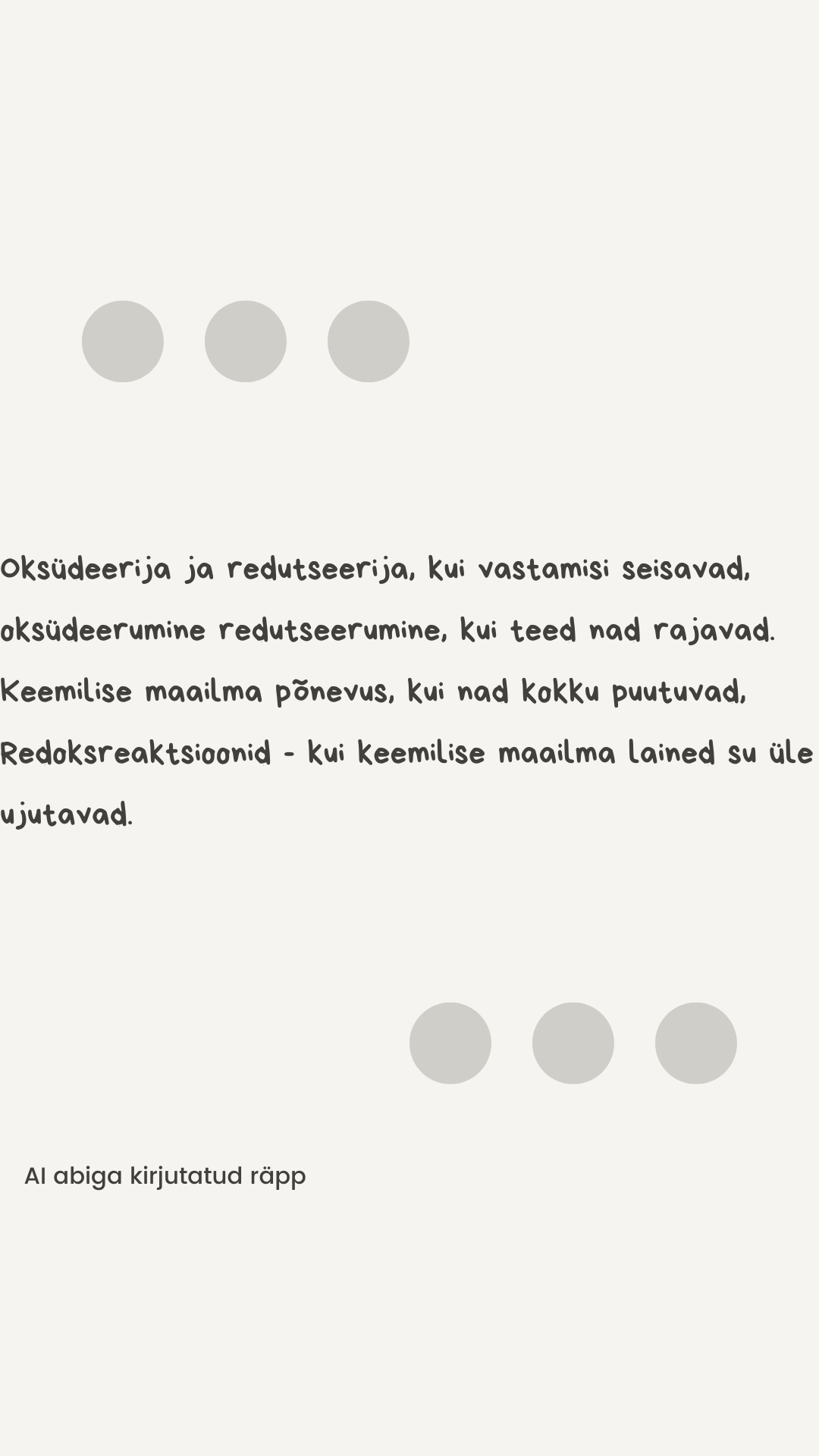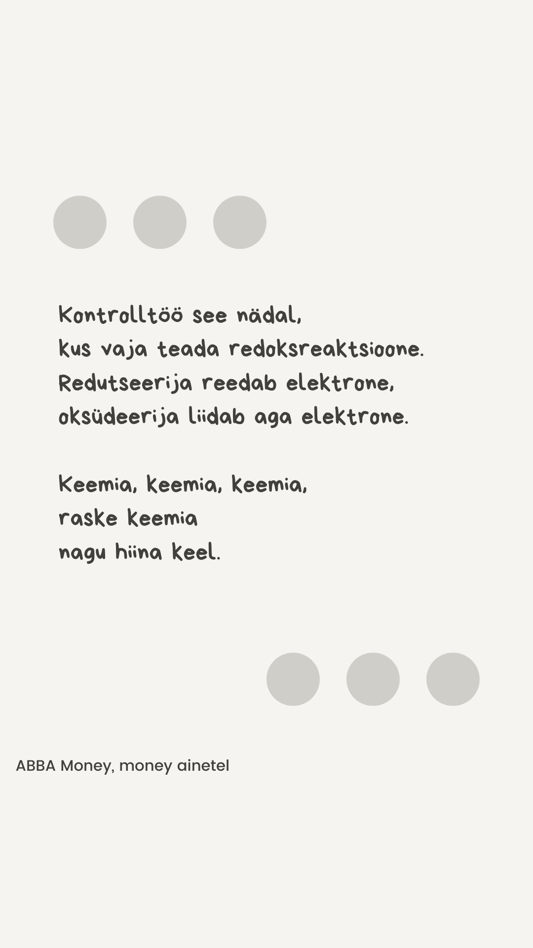 Mai alguses saabuski päev, mil kaheksandikud said suisa pool koolipäeva pusletada: olla loomingulised ja mässata redoksreaktsioonide maailmas luuleliselt ja popmuusikaliselt.