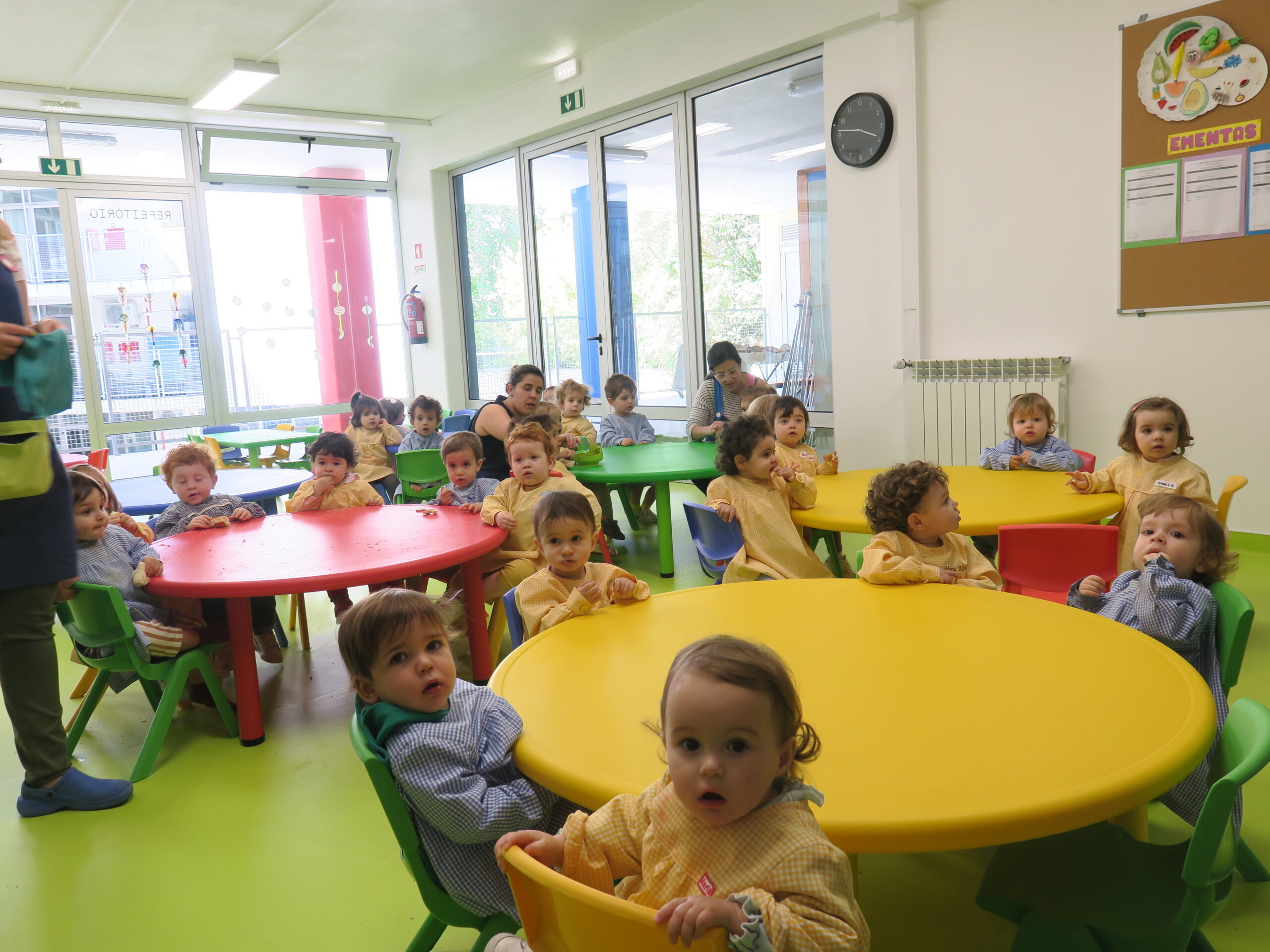 Selles koolis saime aimu laste projektipäevadest ja -töödest, sest tulemused olid kõigile näha. Nunnumeeter tõusis kõrgele sõimerühmade juures, kus kõige noorem rühm algas kuuekuiste lastega. Seal vesteldes saime teada, et Portugalis saavad emad palgalist lapsepuhkust ainult 15 päeva ja pärast seda võivad kuus kuud ilma palgata kodus olla.