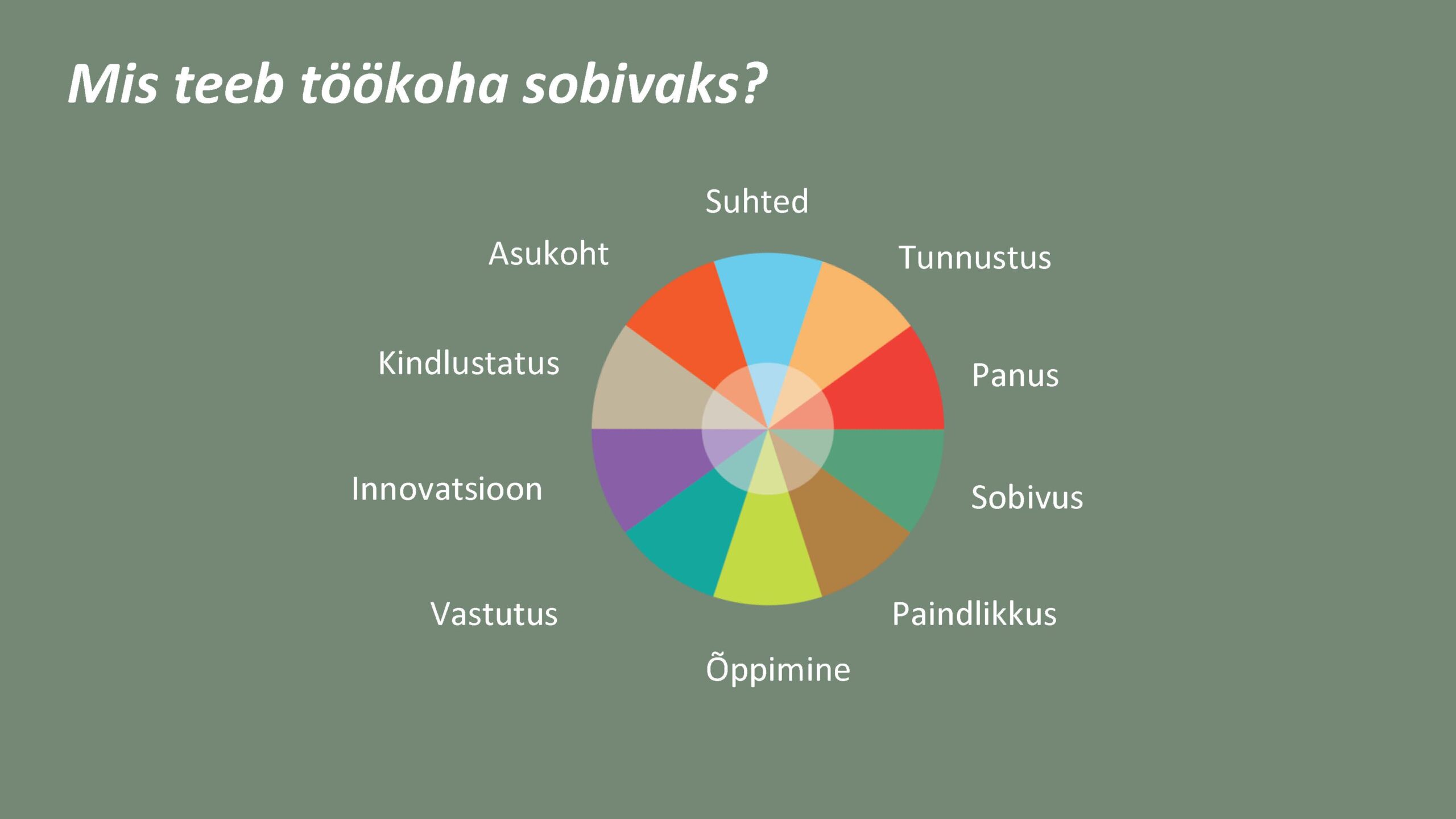 Tiina Saar-Veelmaa tutvustas oma tööõnnevalemit, mis koosneb kolmest soovist. Esiteks tahan, et minu tööst jääks nähtav ja ajas püsiv jälg. Teiseks, tahan teha tööd, mis muudab maailma paremaks ja kus saan kohe tagasisidet. Ning kolmandaks, tahan olla 100% mina ise, koos oma tugevuste, nõrkuste ja unistustega.