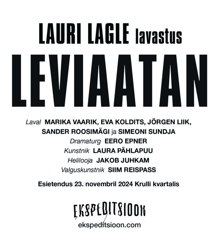 Novembris jõuab Ekspeditsioonis publiku ette teatri kunstilise juhi Lauri Lagle uuslavastus „Leviaatan“. See etendub uhiuues mängupaigas Krulli kvartali vanas remonditsehhis, mis kohandatakse lavastusele sobivaks mängupaigaks. Lavastus on sobilik vaatamiseks ka gümnaasiumieale. Piletite broneerimine on juba alanud.