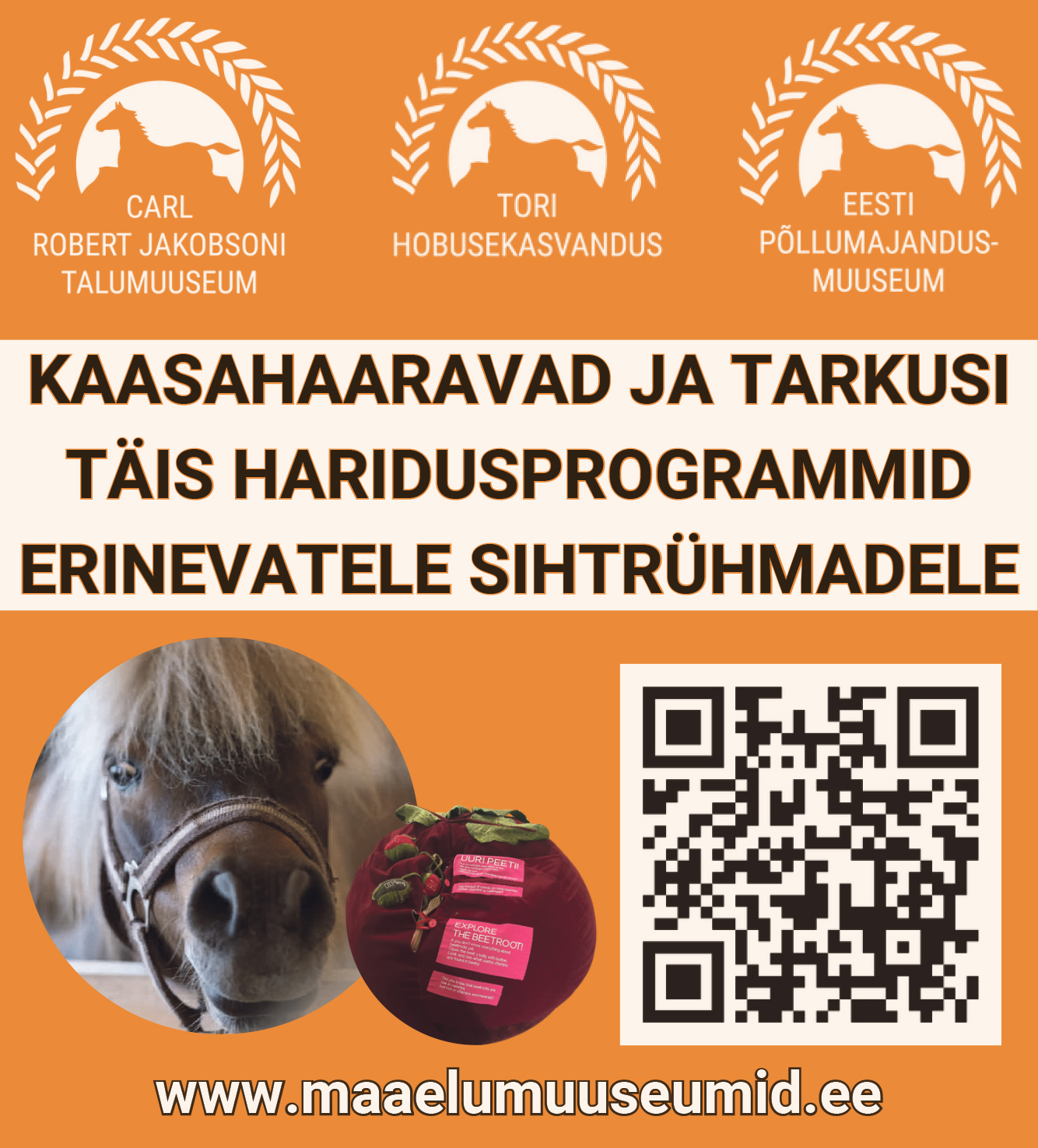 Tori Hobusekasvandus on saanud hoo sisse ning ootab õpilasi avastama hobuste salajast maailma. Meie haridusprogrammid pakuvad ainulaadset võimalust saada lähemalt tuttavaks nende majesteetlike loomadega – mõista nende käitumist, saada teada, mil moel nad suhtlevad ning kuidas lugeda nende kehakeelt, näha hobuste eri värvusi ja saada teada, kuidas värvuste nimetused on tekkinud. Uurime ka, millised on hobuste liigid ja liikumisviisid ning kuidas kasutab hobune oma meeli.