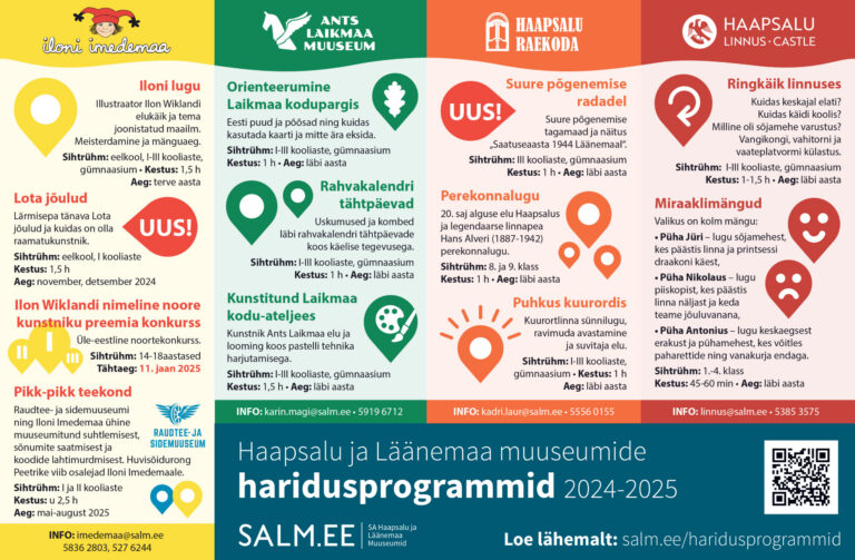 Kõige parem ja seltsis segasem on külastada noortel muuseume, kui nad on valinud mõne haridusprogrammi. Läbi aastate on Haapsalu ja Läänemaa muuseumid pakkunud väga eriilmelisi harivaid programme, mis viivad tagasi keskaega või maailmakultuuri kuuluva illustraatori Ilon Wiklandi elu ja loomingu juurde.