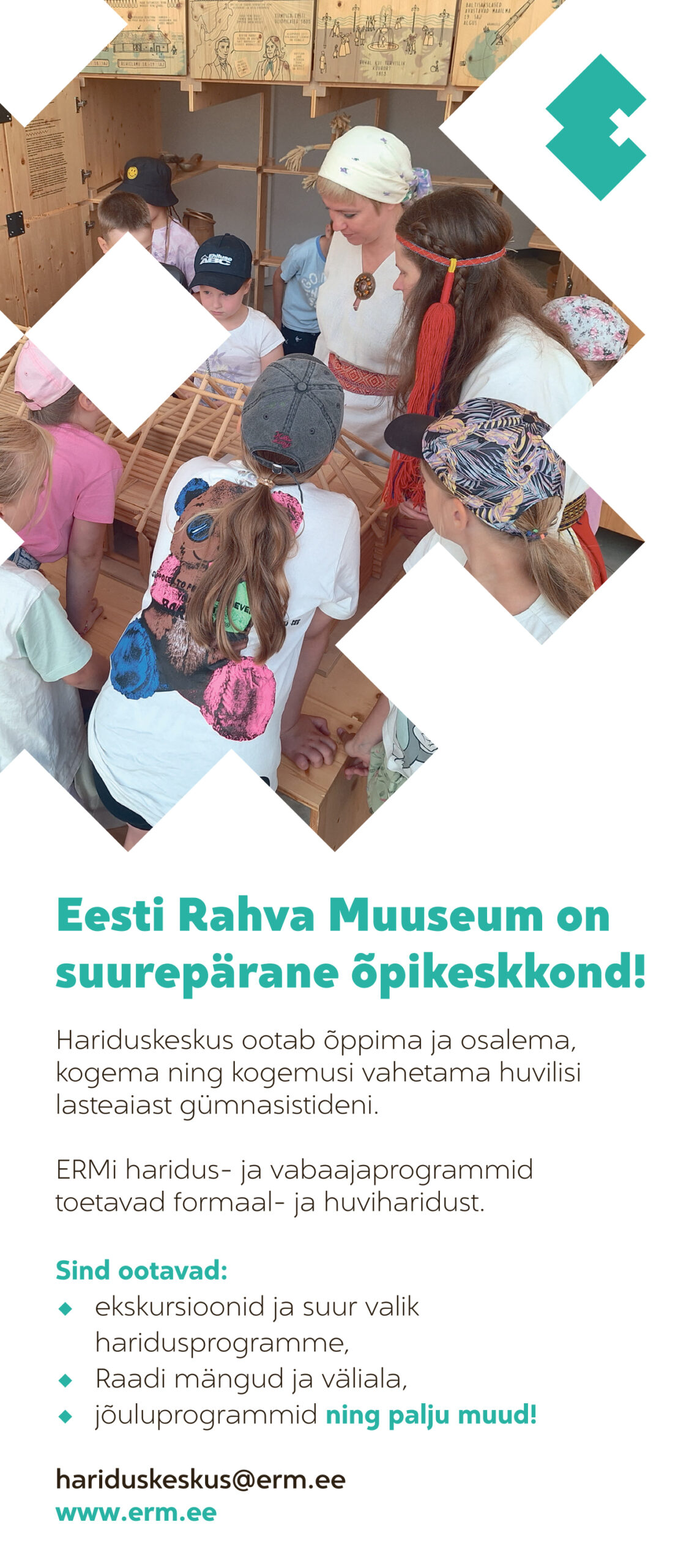Kõik ERM-i haridusprogrammid ja -projektid leiab muuseumi kodulehelt www.erm.ee/haridus või võta ühendust hariduskeskus@erm.ee.