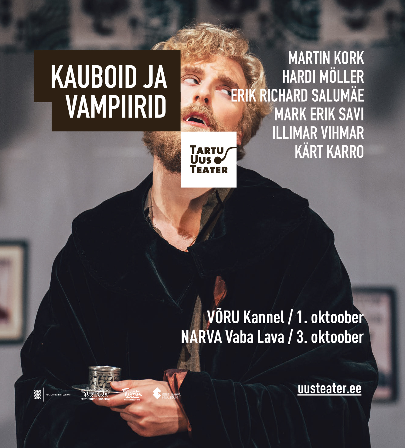 Sel hooajal tuuritame Eestis oma märulilavastusega „Kauboid ja vampiirid“, mis sobib nii täiskasvanutele kui ka noortele vaatajatele alates 13. eluaastast. Martin Korgi lavastus jõuab oktoobri alguses esmalt Võru Kandlesse ja siis Narva Vabale Lavale. Lavastus viib müstilisele läänenabale, kus oma lõputu elu päevi maha joova pessimistliku vampiiri maailmalõpukõrtsi satuvad neli uljast kauboid. Hoogsas lavastuses leidub jõu- ja ilunumbreid, tähenärijalikke sõnamänge ja testosteroonist pungil mõõduvõtmisi. Vaimuka pealispinna all käsitletakse aga eksistentsiaalseid teemasid, nagu surematus, edujanu ja pideva kasvu poole püüdlemine. Vesternlavastuses mängivad Martin Kork, Hardi Möller, Mark Erik Savi ja Erik Richard Salumäe.