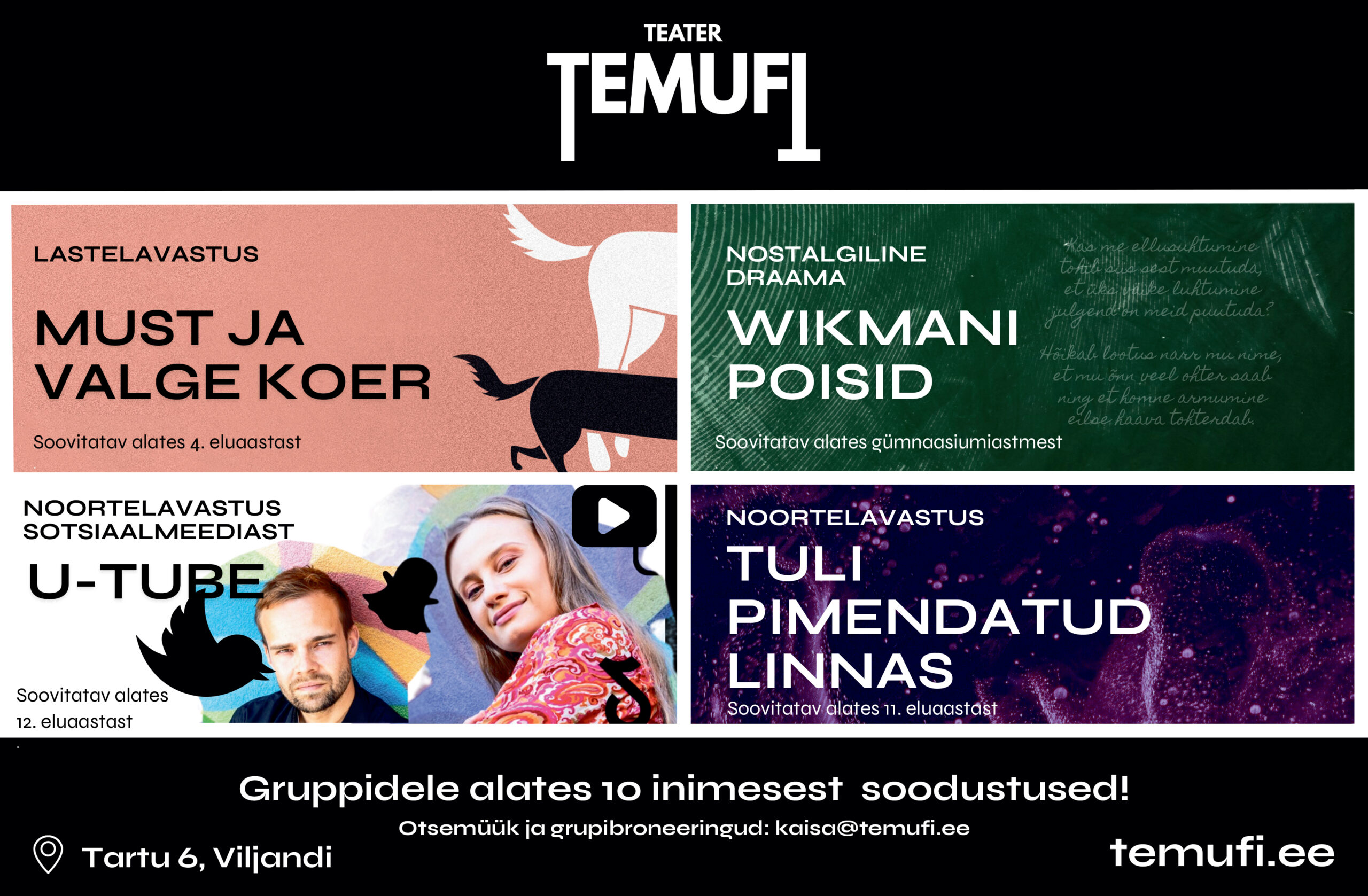5. oktoobril avatakse Viljandis täiesti uus TEMUFI teatrimaja. Sügishooajal jõuab lavale kolm eripalgelist lavastust, mis kõik uurivad inimese sisemaailma keerukust ja elu eri etappe.
