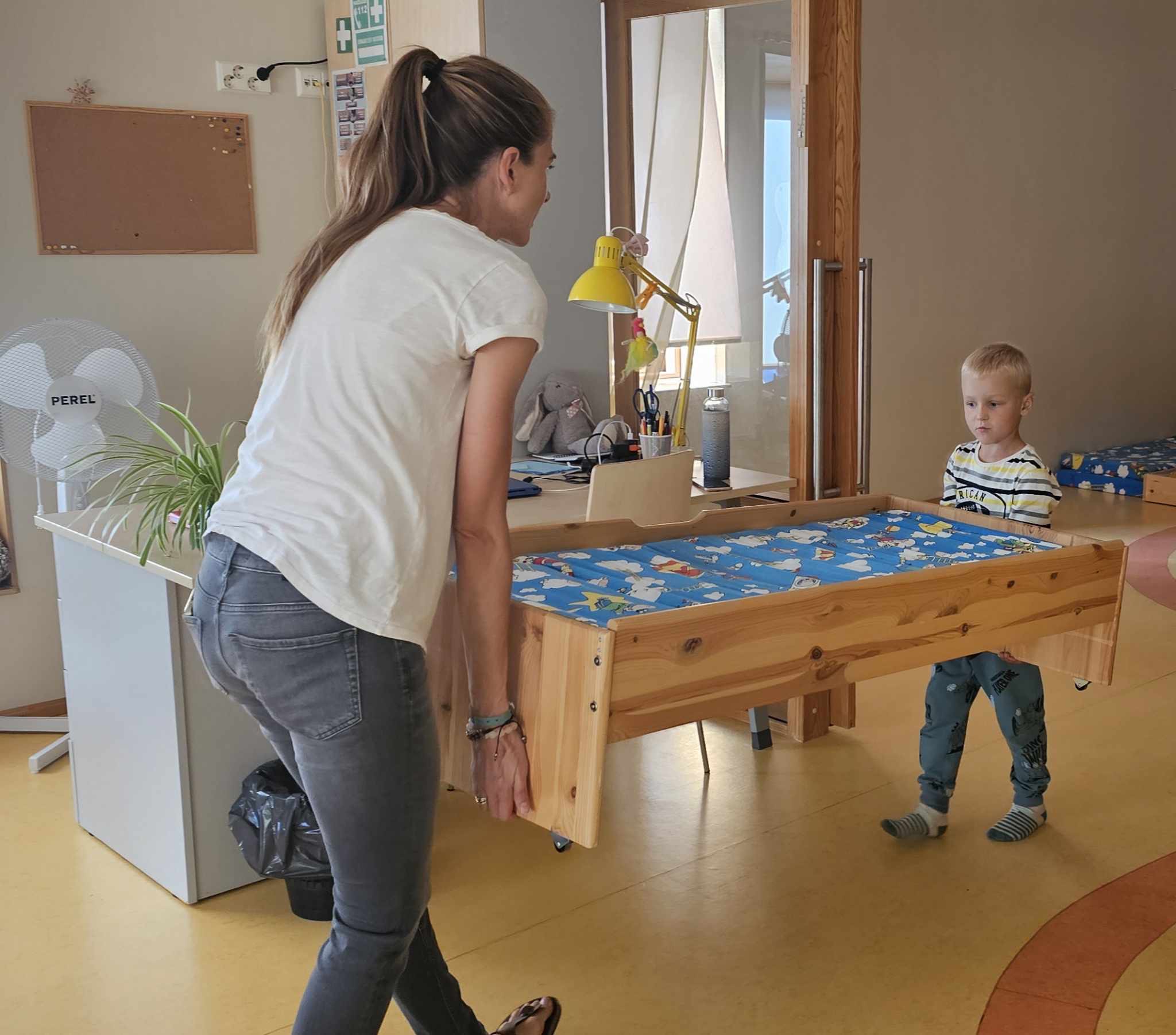 Laps veedab lasteaias iga päev 8–10 tundi, millest poolteist tundi on vaikne puhkeaeg. Paljudes rühmaruumides on üks tuba täidetud vooditega ja seal ei jätku ruumi teha midagi muud. „Võtame lastelt ära suure ruumi, kus nad saaksid arendada oma mängu,“ ütles Kummer. Lapse arengu seisukohalt on oluline, kui ta saab sama mängu jätkata päevast päeva, ilma et peaks seda vahepeal kokku korjama. Seeläbi on lapsel võimalik luua oma mängule lisakihte ja pikemalt süveneda ühte tegevusse. Kui rühmas on voodite asemel madratsid, tekib võimalus luua tuppa tegevuspesasid. Lisaks saavad lapsed ehitada madratsitest onne ja selle käigus toetada oma kehalist arengut. Kui voodid eemaldada, tekib juurde ka seinaruumi, kuhu saab silmade kõrgusele riputada laste tehtud tööd, Nii on õppeprotsess laste jaoks nähtav ning igaüks saab iga hetk oma tööde juurde tagasi tulla, arutada nende üle sõpradega ja seeläbi kinnistada oma teadmisi.