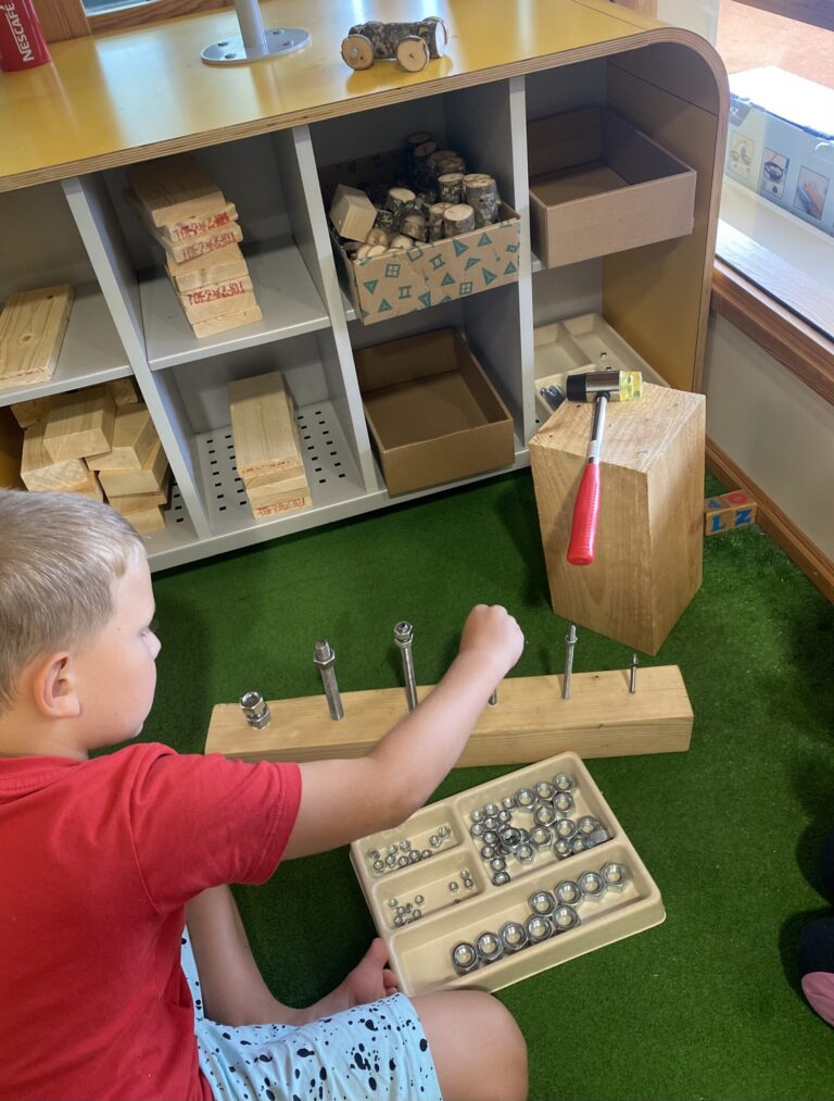 Lasteaia koridoris asuv puutöö tegevuspesa on väga populaarne.