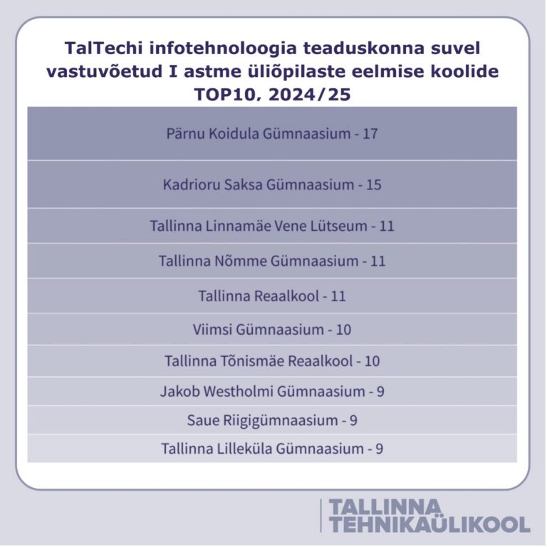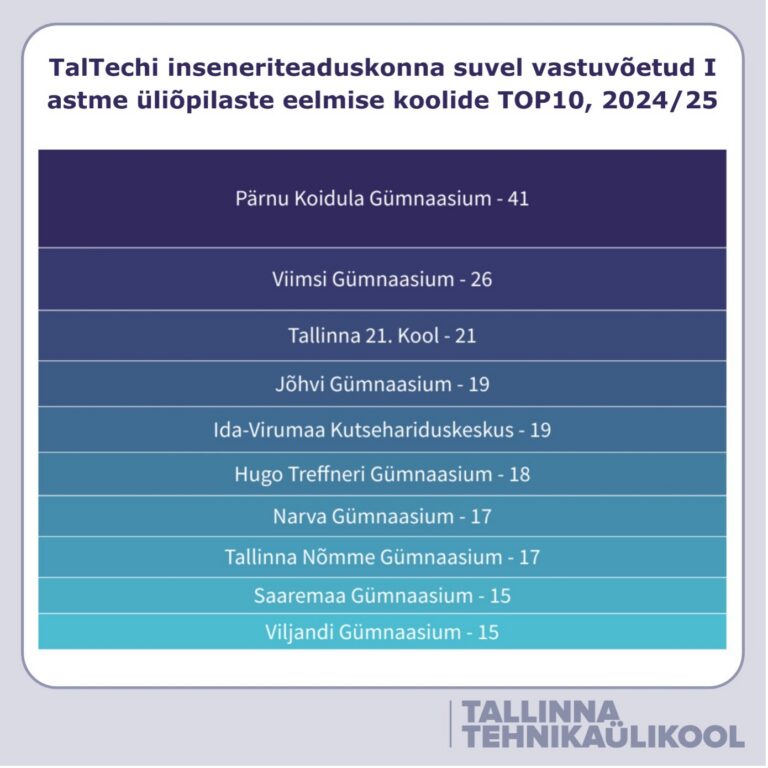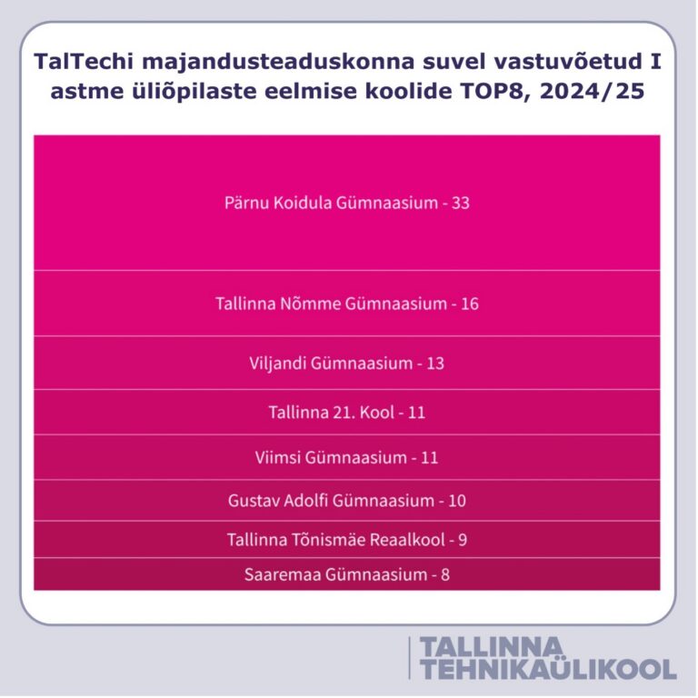 Tallinna Tehnikaülikooli suvel vastuvõetud tudengite arv koolide järgi