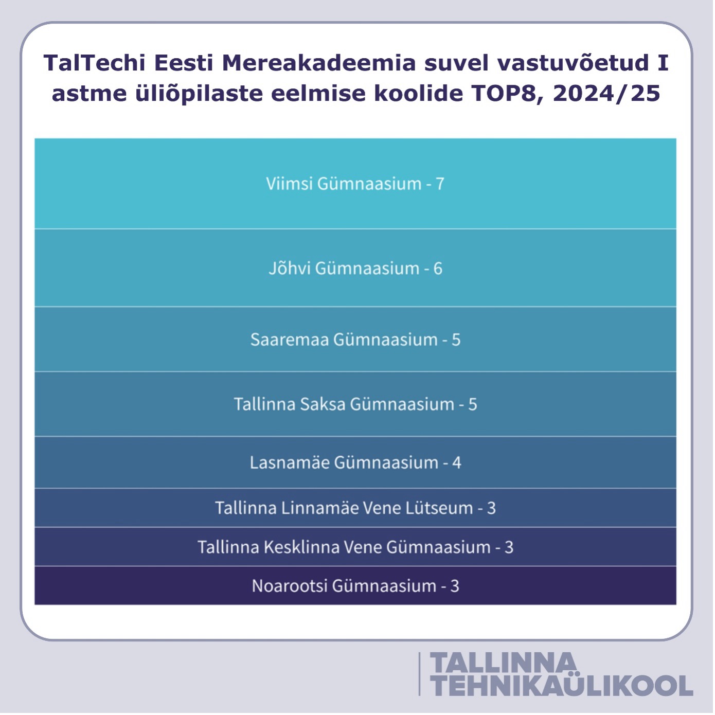 Tallinna Tehnikaülikooli suvel vastuvõetud tudengite arv koolide järgi