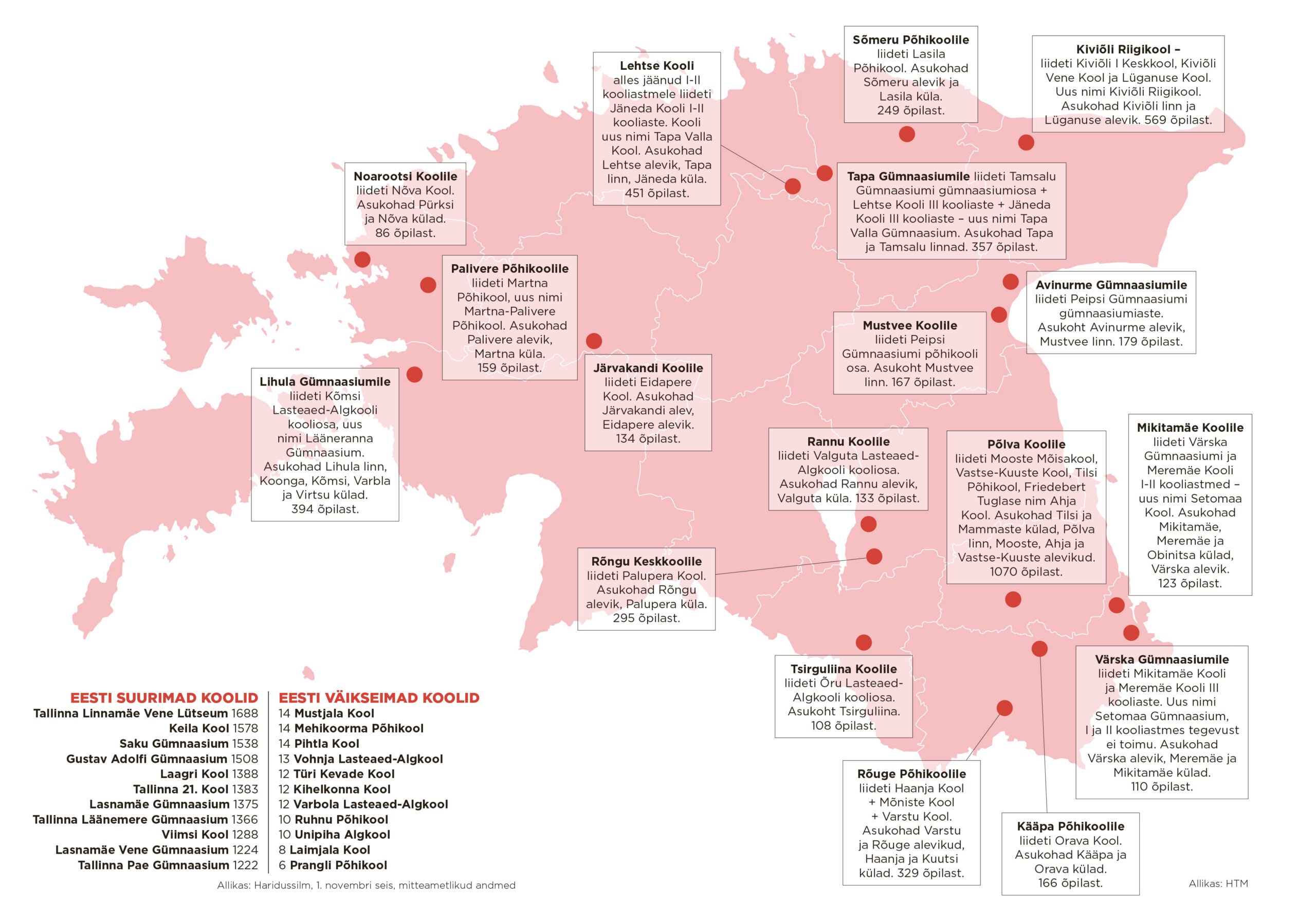 Kahe aasta eest jagas OECD kahaneva ja vananeva rahvastikuga Eestile nõuandeid nutikaks kohanemiseks. Haridusvõrgu korrastamisel soovitati muuhulgas viia piirkonna koolid ühise juhtimise alla. Sellest sügisest ongi eri paigus rohkelt koole ühendatud.