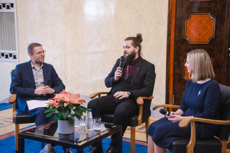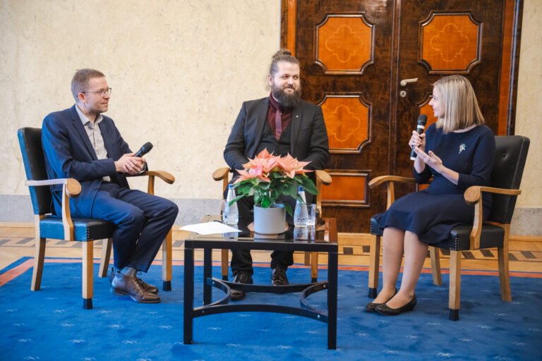 Seda kõike kuulas huviga pealt ka president Karis, kes oli vestluse ajaks kuulajate hulka imbunud. Ruumist käis läbi tunnetatav energialaeng, kui ta andis märku, et soovib ka ise laureaatidele mõne küsimuse esitada.