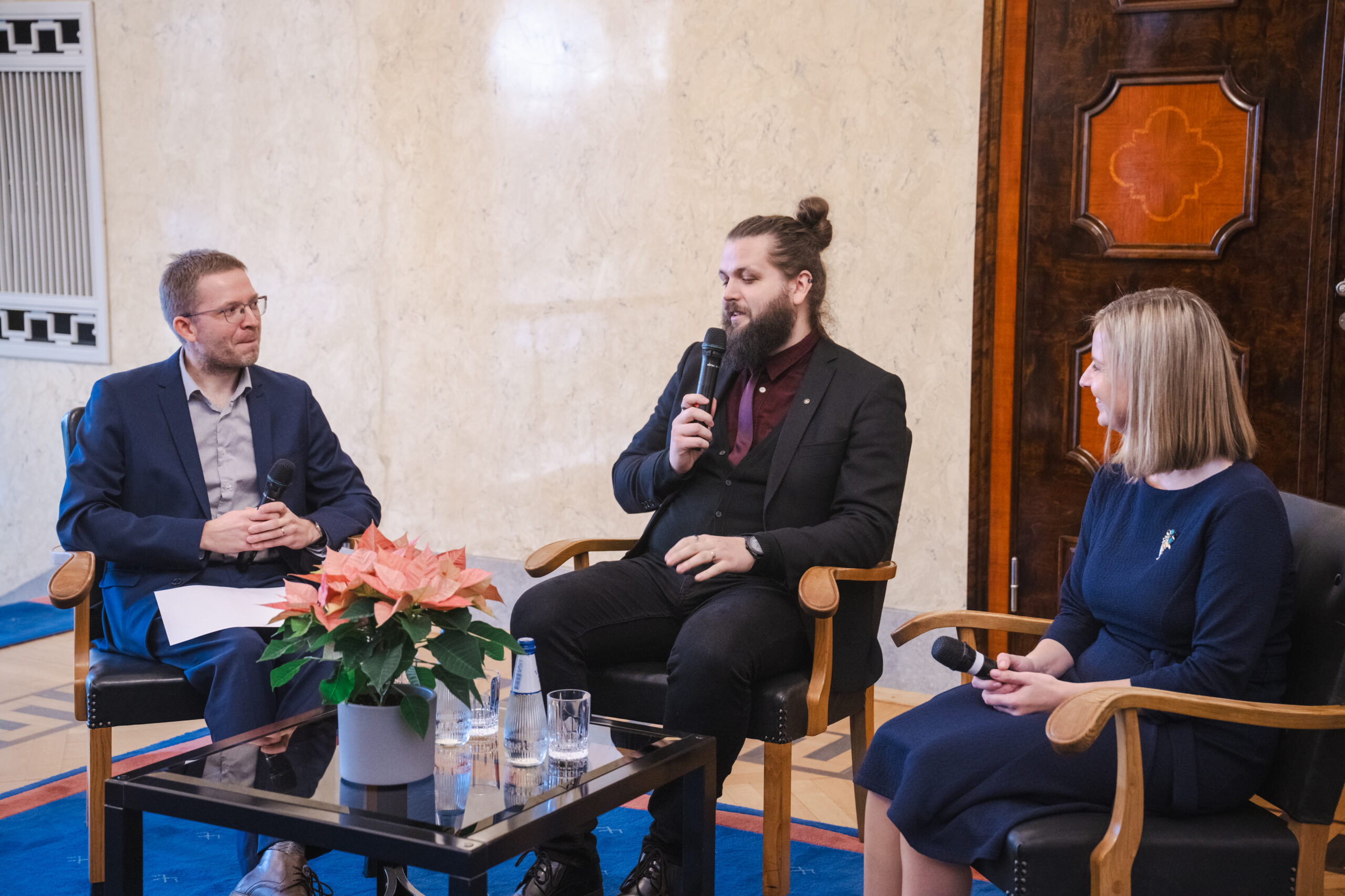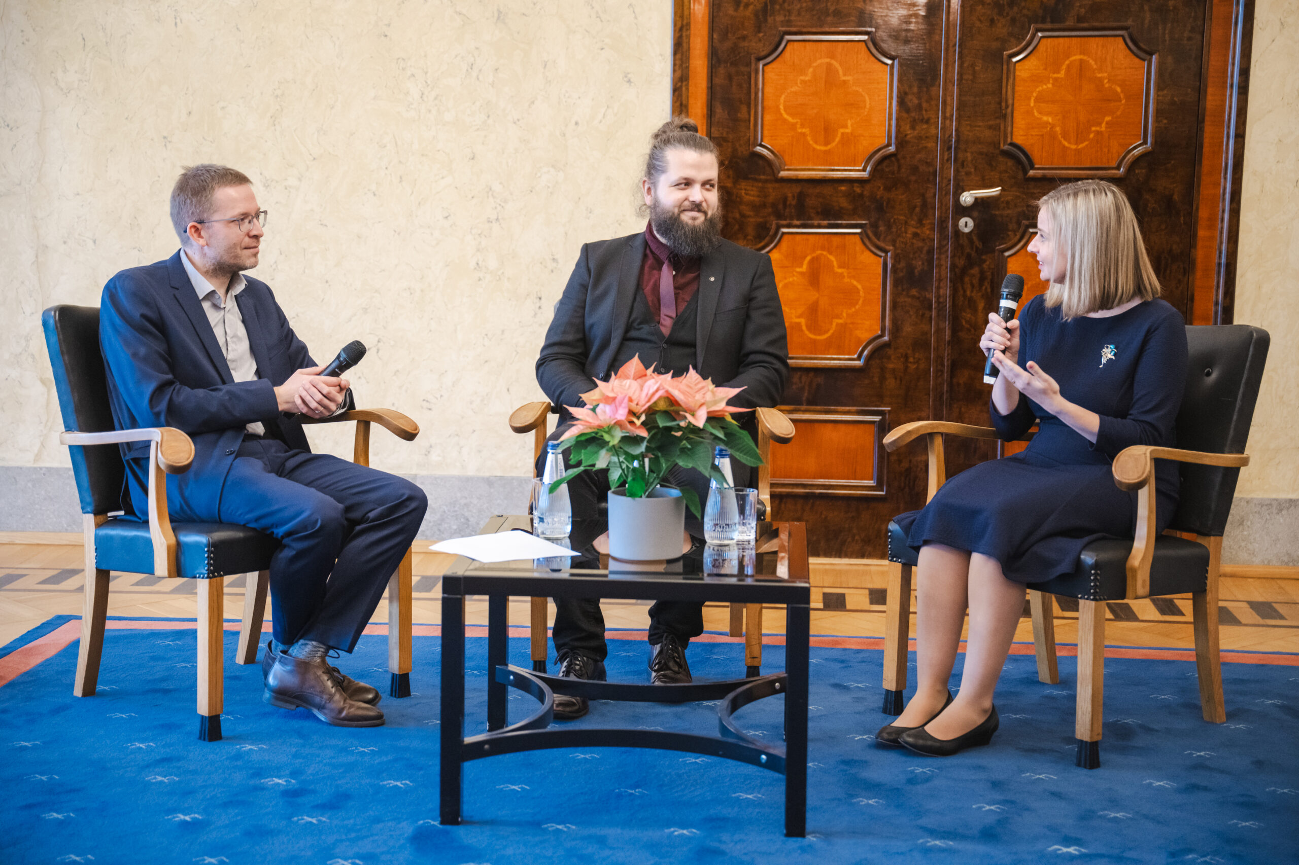 Presidendi avasõnadele järgnenud vestlusringis paistis nende suurim ühine nimetaja olevat aga see, et nii Rumberg kui Maasik on leidnud elus oma koha ja eesmärgi ning ilmselt ongi see igas valdkonnas preemia saamise üks eelduseid.