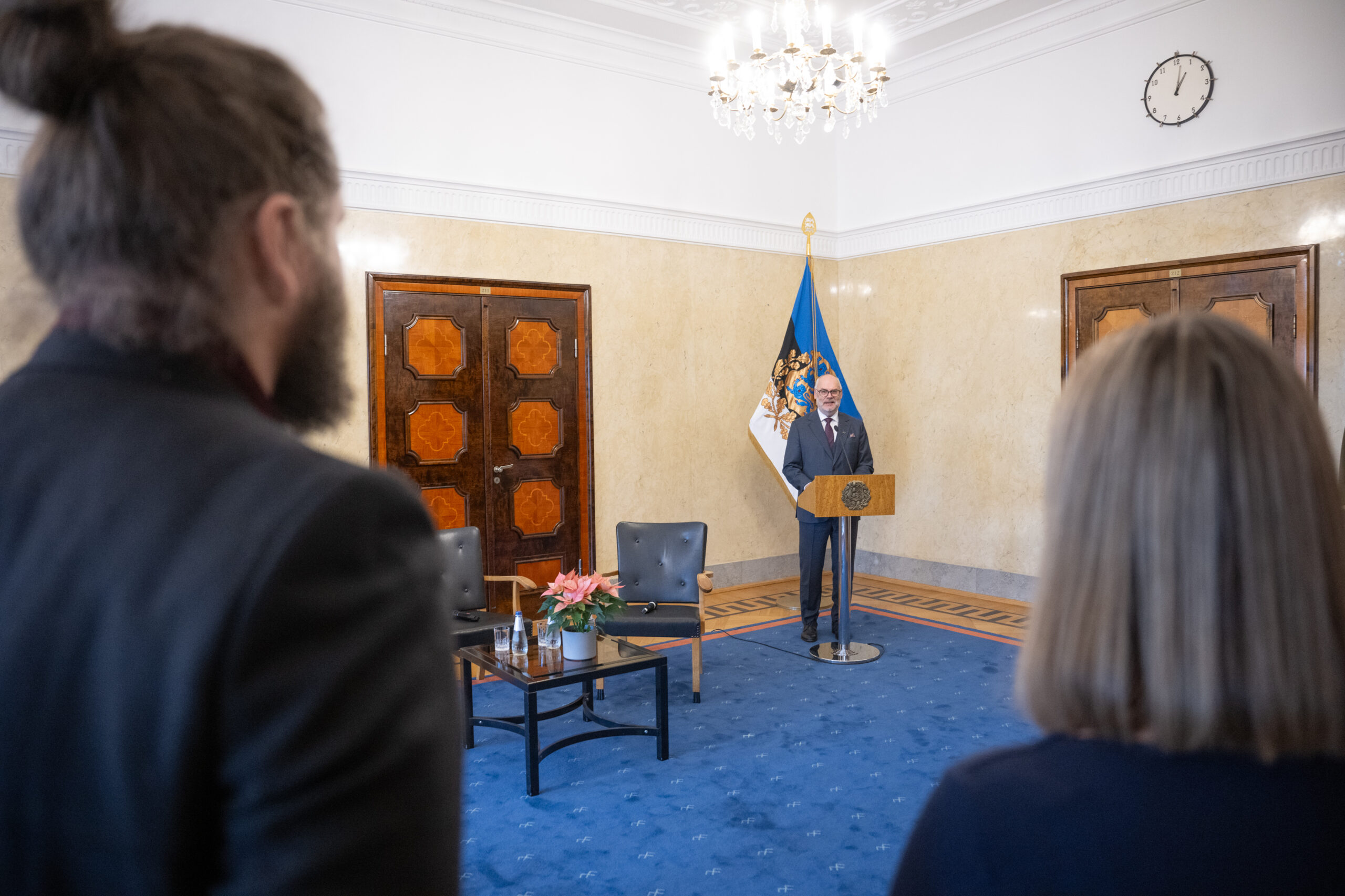 Novembri jaoks ebaharilikult päikselisel päeval oli Vabariigi Presidendi Kantselei ümarasse trepihalli tseremooniale kogunenud paarkümmend inimest ja pikema viivituseta sisenes ruumi ka president Alar Karis. Riigipea rõhutas oma sõnavõtu alguses, et Eestis ei ole mitte maailma parim haridus, vaid parimad haridused, pöörates tähelepanu tõsiasjale, et tegemist on suure ja keerulise organismiga, mille iga lüli võib olla erinev, kuid nõrgad on neist vähesed. „Kui saavad kokku õpetajate vabadus, koolijuhtide toetus ning haridustehnoloogia võimalused, on õppijatel, kus iganes Eestis, võimalus saada täisväärtuslik elu kindlustav haridus,“ ütles president Karis.