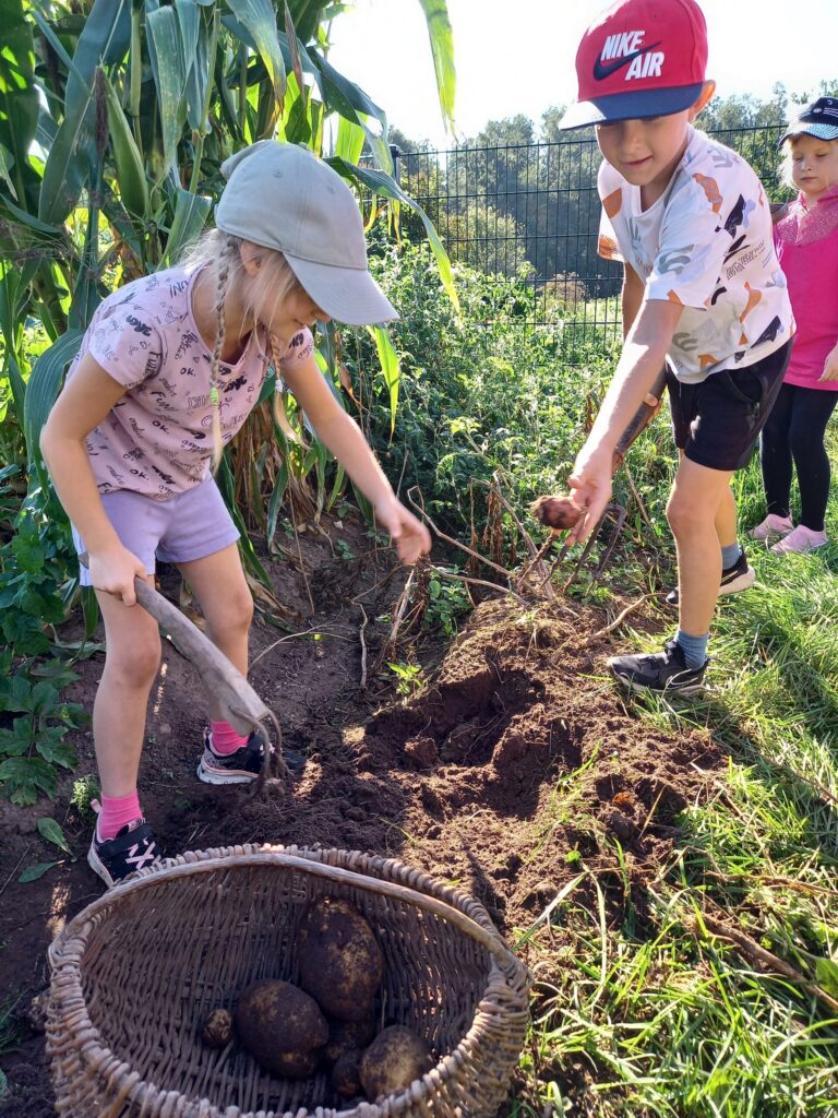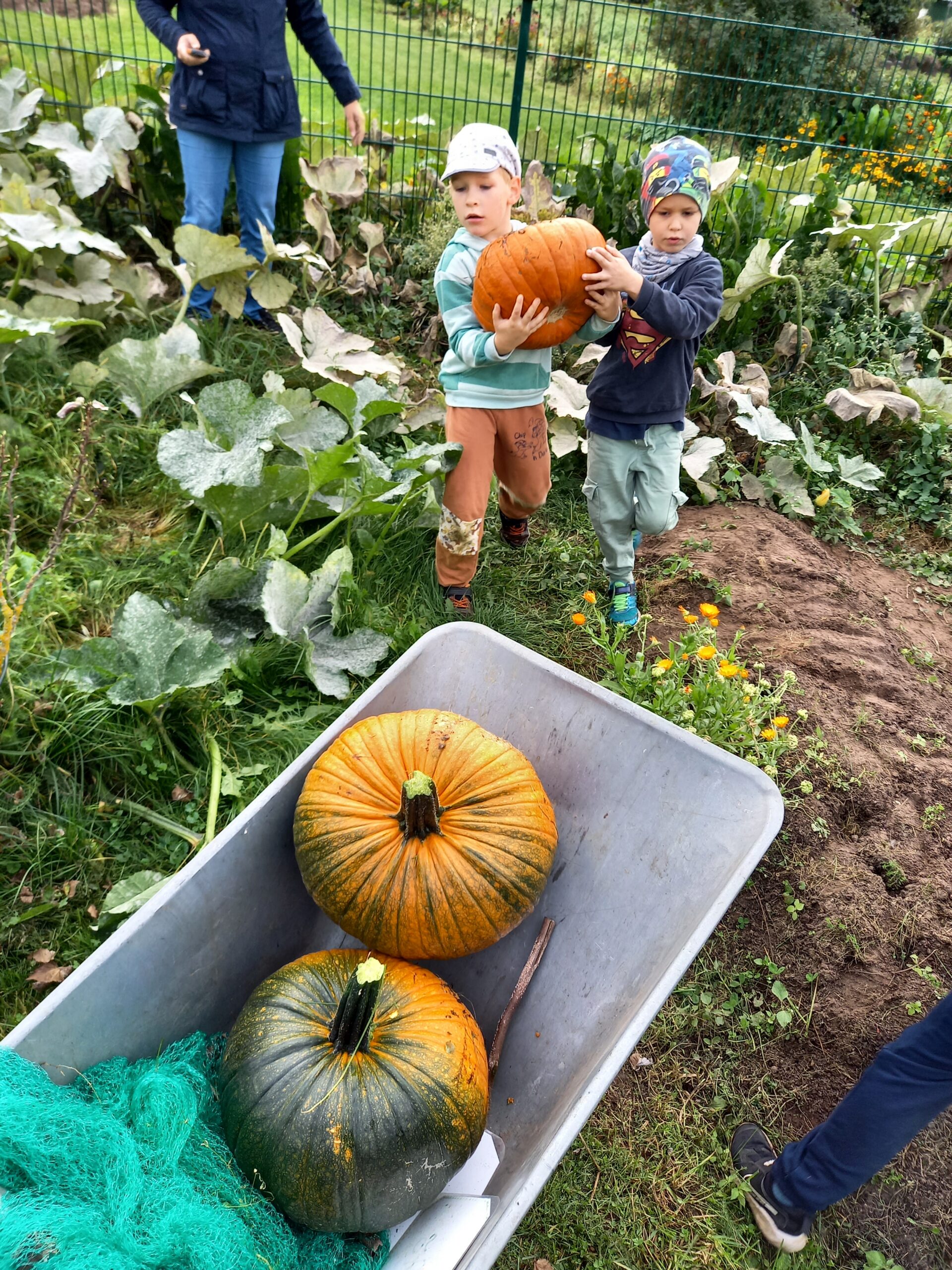 Siiski oli saak uhke ja rõõmu palju! Kaks kõrvitsataime kasvatasid meile 16 uhket kõrvitsat, mais kasvas kahe lapse kõrguseks ning andis kastitäie maitsvaid tõlvikuid, sõstartomat oli võimas ja imemaitsvate viljadega, bataat kasvas põneva juurikate kogumina ning maitses suurepäraselt. Kõik õnnestus. Kasvatatud saak sai kaalutud, võrreldud, loendatud ja tabelisse kirja pandud.