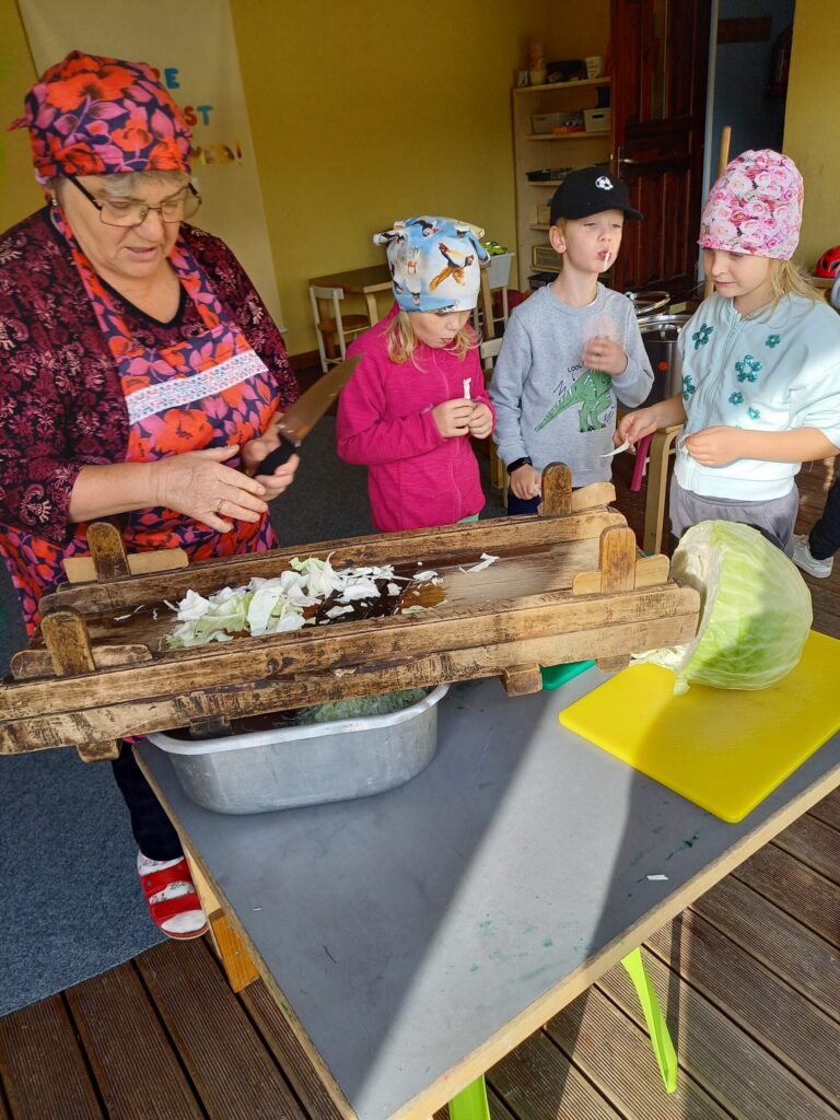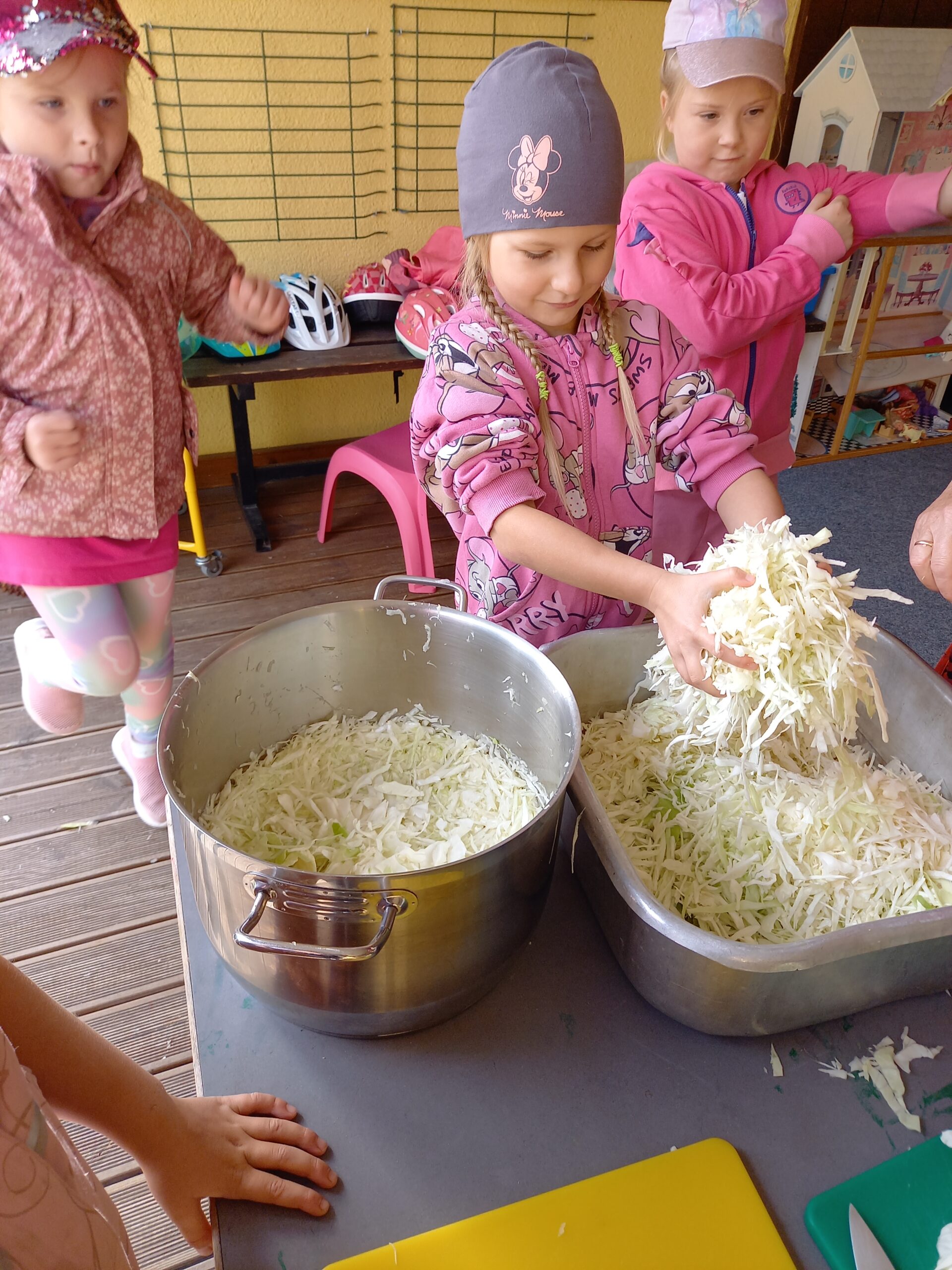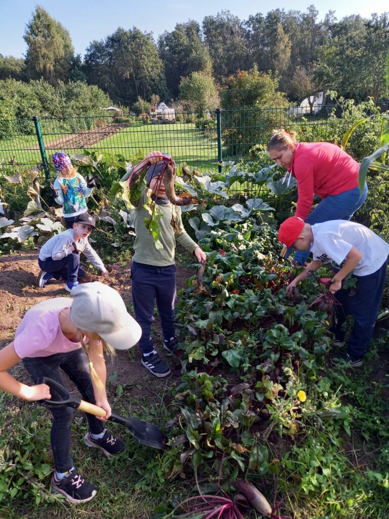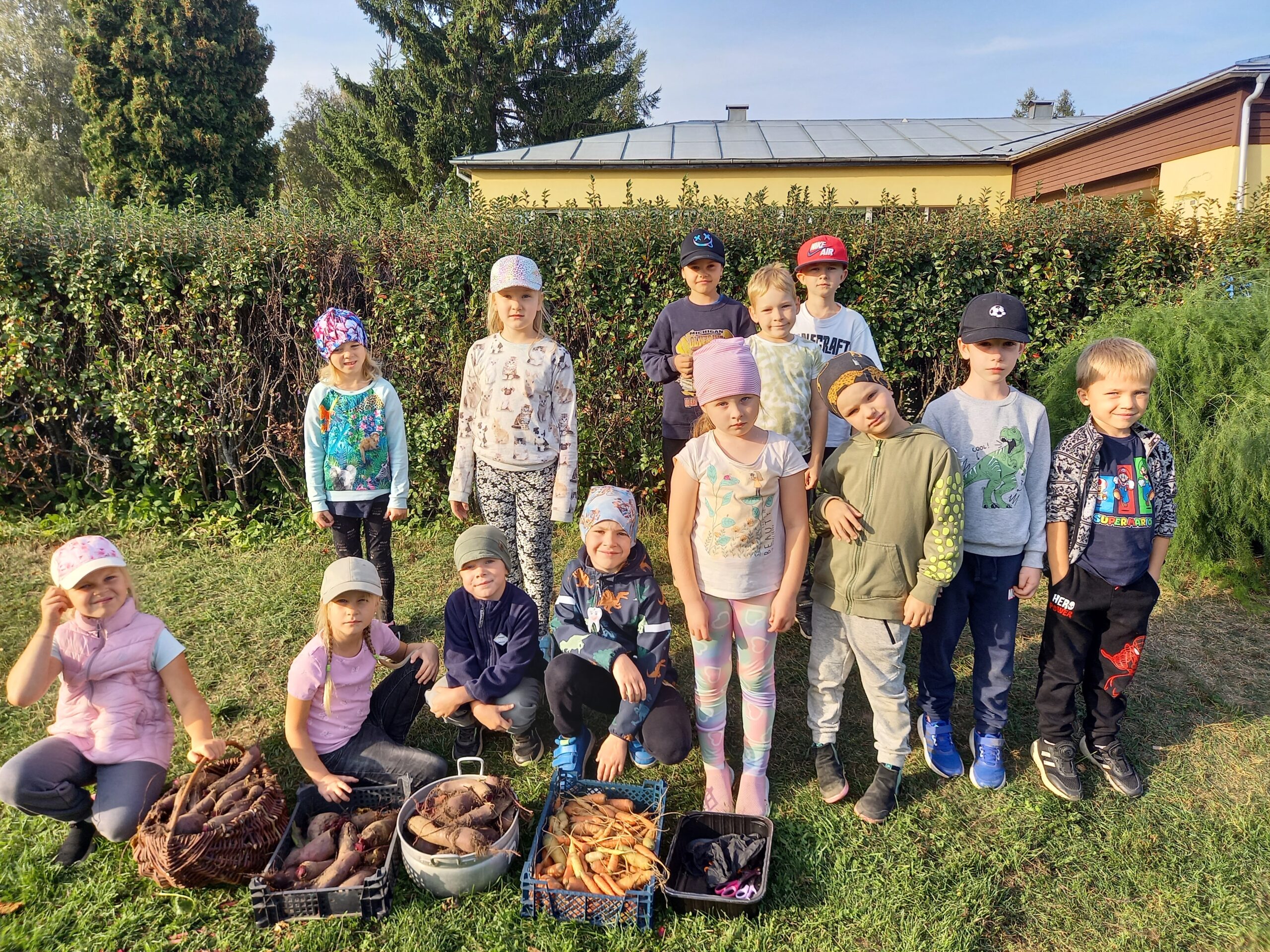 Väärindasime omakasvatatud saaki rõõmuga. Õpetaja Katrin Kuusk keetis lastega ühel päeval kogu rühmale lõunasöögiks borši ja kõrvitsa-õunavahu omakasvatatud saadustest. See maitses väga hästi! Mihklilaadaks keedeti õpetaja Katriniga arooniasiirupit. Õpetaja Marje Normaniga hapendati vanamoodi kapsaid, tehti punapeedikaraskit ning keedeti laadaks punapeeti. Lenna kodus tehti õunamahla, mida jagus müügiks laadalaualegi. Loore-Mia ema valmistas mihklilaadaks 21 purki boršipõhja, kus ta kasutas ära laste kasvatatud punapeedid, porgandid ja sibula.