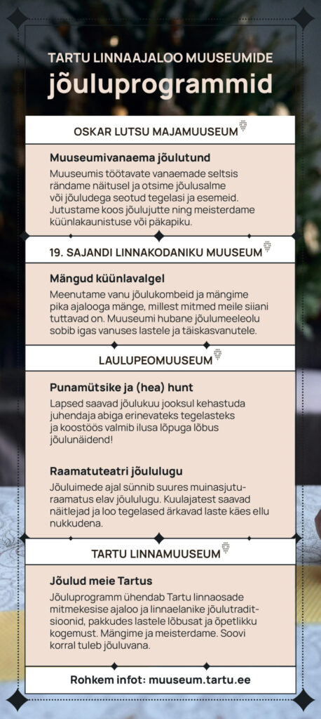Tartu Linnaajaloo Muuseumid pakuvad põnevat programmi nii majades kui linnatänavatel