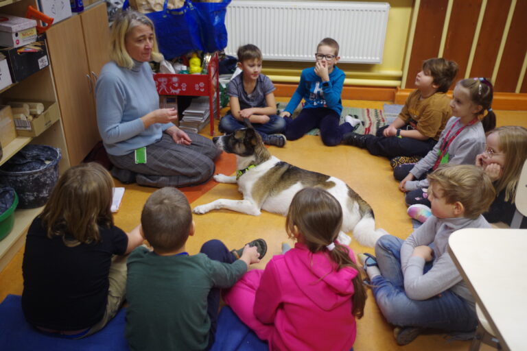 Väljaõppinud teraapiakoer Klaus õpetab lastele sotsiaalseid oskusi ja sõbralikkust. Klausi töö on olla laste sõber.