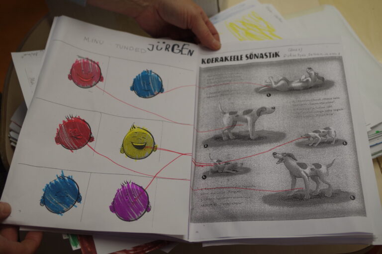 Esimesel poolaastal teevad lapsed loovtöödest raamatu „Mina ja Klaus“. See psühhoedukatiivne töö käsitleb teemasid, mida lastel läheb koolis toime tulemiseks vaja. Üks osa on näiteks „Minu ja Klausi tunded“ – oluline, et laps tunneb ära, oskab nimetada ja mõistab enda ning kaaslase (ka koera) tundeid. Kõrvutatakse enda ja koera tundeid, abiks inimese näoilmeid kujutavad pildid kõrvutatuna koera kehakeelega.