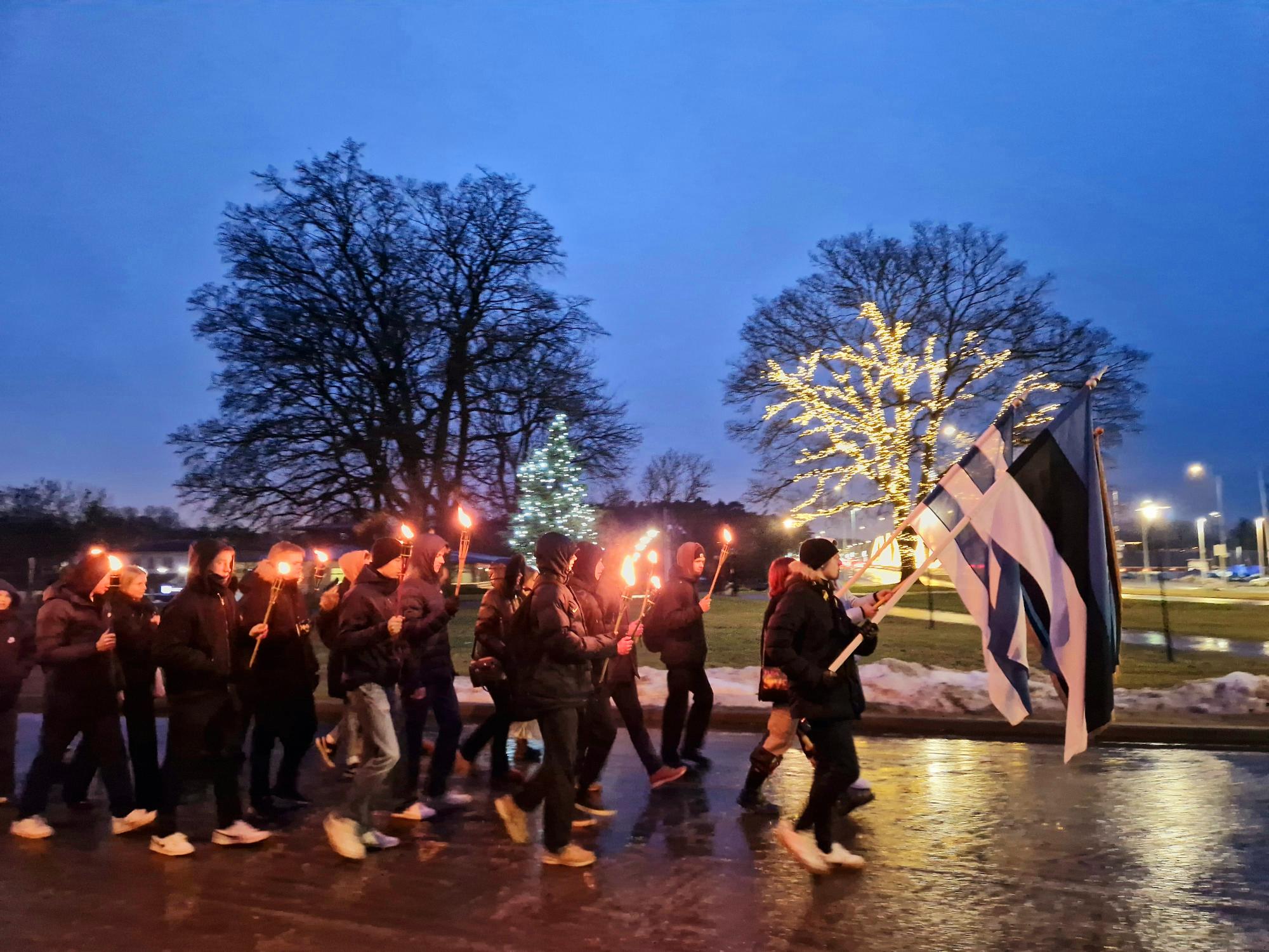 Ka täna hommikul kell 8 sumises kloostrivaremete hoov elevil laste häältest, kui kooli enam kui 900 õpilast koos õpetajatega klasside kaupa sinna hiiglasliku poolkaare moodustasid. Pärast linnaosavanema Doris Raudsepa tervitussõnu asutigi rongkäiguna läbi varahommikuse Pirita kooli poole teele, koolijuht ja lipukandjad kõige ees, tõrvikukandjad ning ülejäänud koolipere nende kannul.